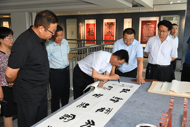 趙明在致辭中向市文旅局、市書畫院及齊澤山先生長期以來對學(xué)校改革發(fā)展給予的關(guān)心和支持表示衷心的感謝。他表示,齊澤山先生為學(xué)校捐贈(zèng)的書法作品為整個(gè)校園人文景觀和文化環(huán)境增添了濃墨重彩的一筆,促進(jìn)了樓宇文化建設(shè)。學(xué)校將珍惜并運(yùn)用好這些優(yōu)質(zhì)文化資源,發(fā)揮好藝術(shù)作品的審美功能、教育功能,用藝術(shù)熏陶和精神洗禮進(jìn)一步激勵(lì)廣大師生。