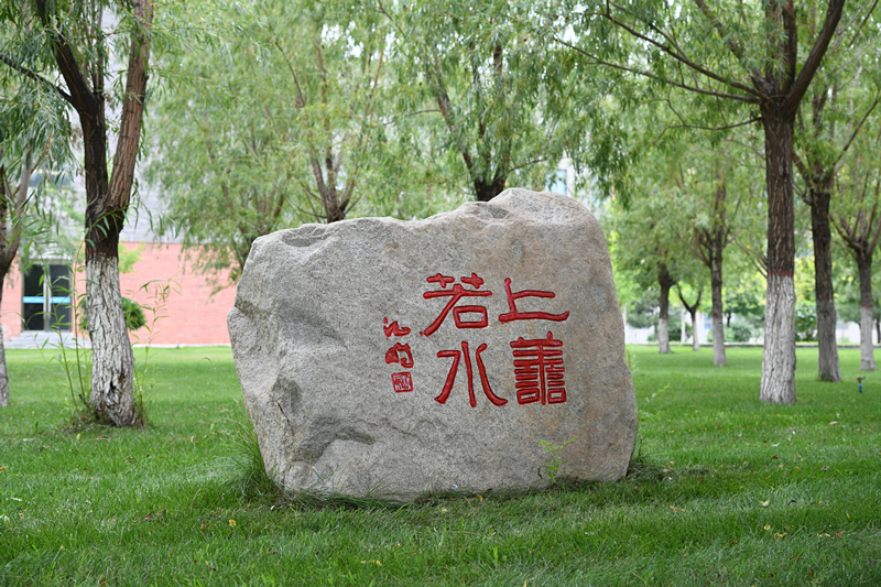 上善若水 ??沈鵬題 ??位于3 號(hào)學(xué)生公寓樓南側(cè)