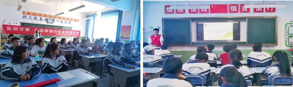 團(tuán)隊(duì)成員在天祝職業(yè)中專(zhuān)教務(wù)處主任張健瑞教師的指引來(lái)到21級(jí)3班,志愿者通過(guò)播放PPT向同學(xué)們宣講了生態(tài)環(huán)保的重要性以及國(guó)家對(duì)于生態(tài)環(huán)保的做出工作部署及法律法規(guī),并且向同學(xué)們進(jìn)行提問(wèn)了生態(tài)環(huán)保知識(shí)、發(fā)放了調(diào)查問(wèn)卷。