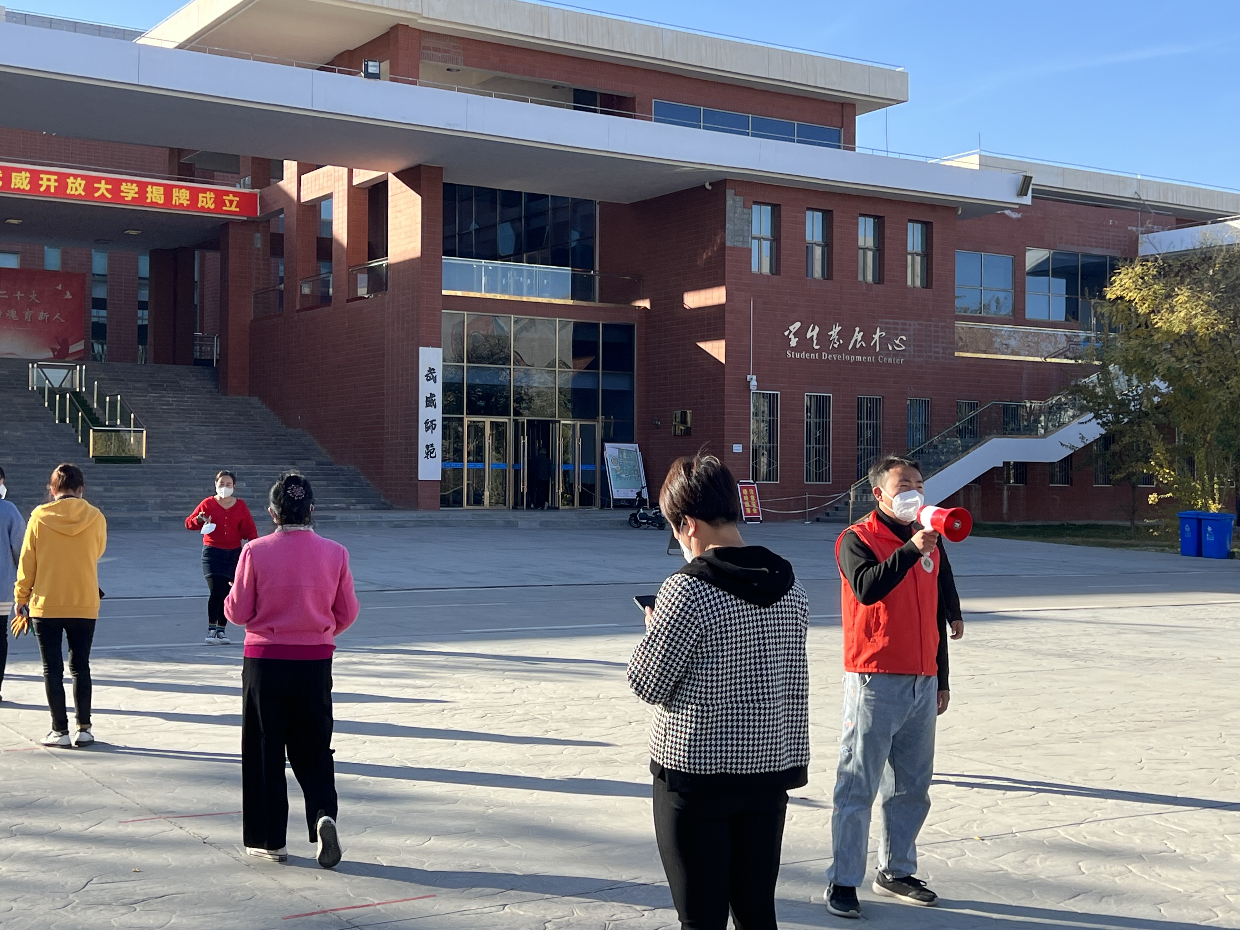 “您好,請(qǐng)測(cè)量體溫、掃場(chǎng)所碼?!薄罢?qǐng)佩戴好口罩,有序排隊(duì)……”校學(xué)生會(huì)的陶玲在學(xué)校食堂門(mén)口值班時(shí)不停地提醒著進(jìn)出打飯的同學(xué)們,這也是她參加校園疫情防控以來(lái)每天講得最多的話。自10月13日涼州區(qū)實(shí)施臨時(shí)管控以來(lái),學(xué)校各學(xué)生組織聞令而動(dòng),身穿“藍(lán)馬甲”積極投身校園疫情防控一線,用奉獻(xiàn)溫暖了這個(gè)秋天。
