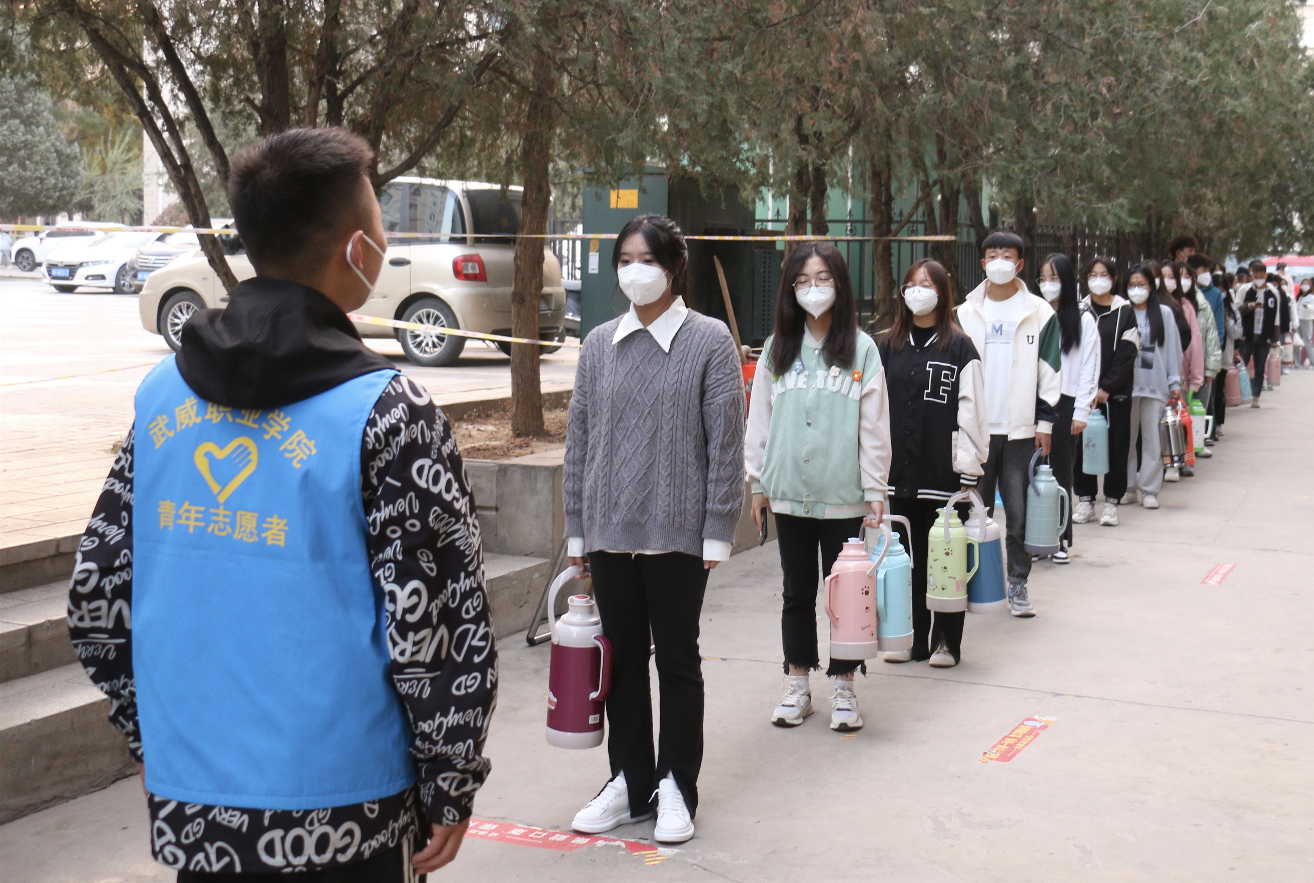 從學(xué)校實(shí)行最小單元宿舍管理開(kāi)始,各學(xué)生組織工作人員分批次、不間斷、輪流值守,他們主動(dòng)亮身份、帶頭當(dāng)先鋒,在校園食堂、水房、超市等人流容易聚集的地方,每天安排志愿者在人流高峰時(shí)間段排班站崗,勸導(dǎo)同學(xué)們遵守疫情防控一米線,不扎堆不聚集,積極佩戴好口罩,做好個(gè)人防護(hù)工作,確保同學(xué)們吃飯、購(gòu)物、打水健康有序進(jìn)行。在對(duì)可能傳入疫情的校園圍欄處開(kāi)展值守勸阻工作,積極勸導(dǎo)學(xué)生不購(gòu)買(mǎi)社會(huì)面商品,堅(jiān)決杜絕疫情從社會(huì)傳入校園,將學(xué)校疫情防控各項(xiàng)措施落細(xì)落實(shí),切實(shí)扛起校園疫情防控責(zé)任。一件件“藍(lán)馬甲”活躍在校園每個(gè)角落,服務(wù)同學(xué)的身影從未間斷,成為校園里一道靚麗的風(fēng)景線,用實(shí)際行動(dòng)詮釋了新時(shí)代武職學(xué)子的責(zé)任與擔(dān)當(dāng)。