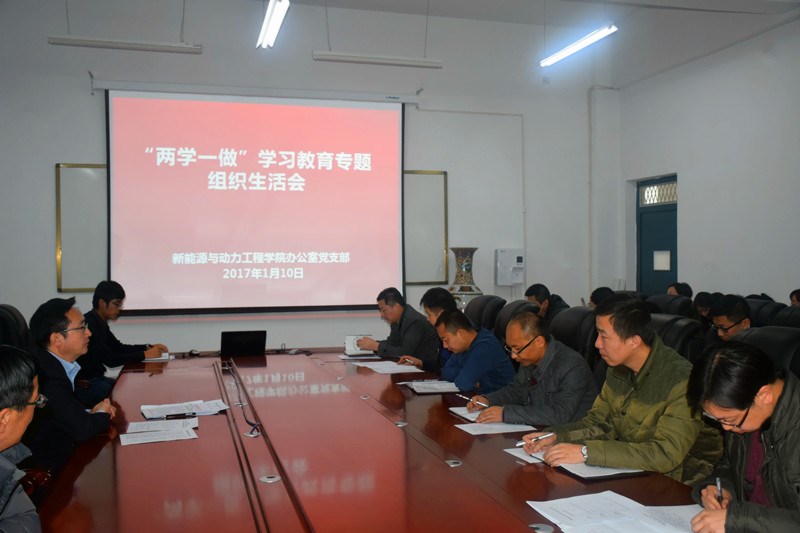 2017年1月10日下午,新能源與動力工程學(xué)院辦公室黨支部在明德樓會議室召開“兩學(xué)一做”專題組織生活會及民主評議黨員會。會議由支部書記任陶主持,全體教職工參加會議。