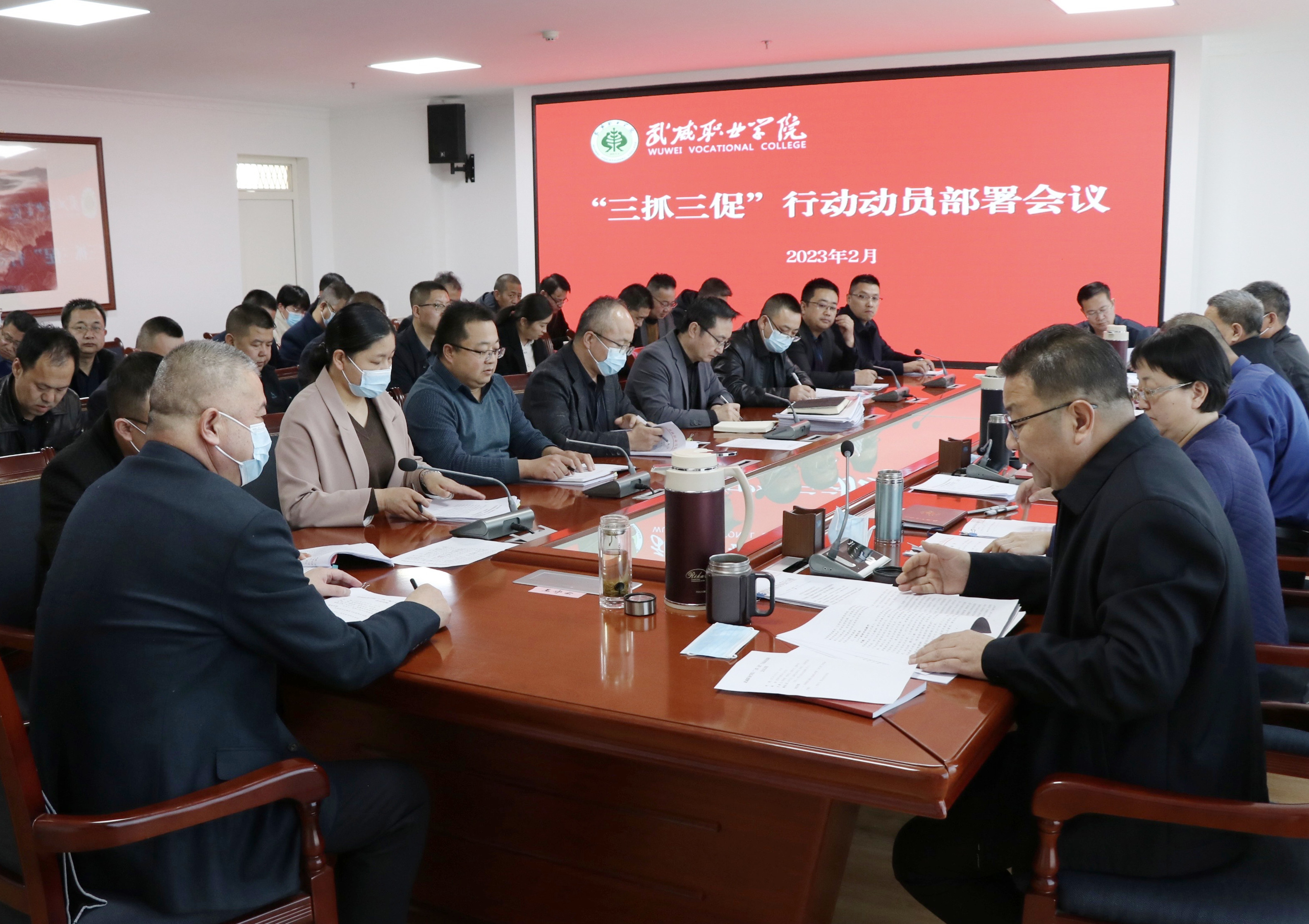 會(huì)議傳達(dá)學(xué)習(xí)了甘肅省、武威市和全省教育系統(tǒng)“三抓三促”行動(dòng)動(dòng)員部署會(huì)議精神,并對(duì)學(xué)校開展“三抓三促”行動(dòng)進(jìn)行安排部署。