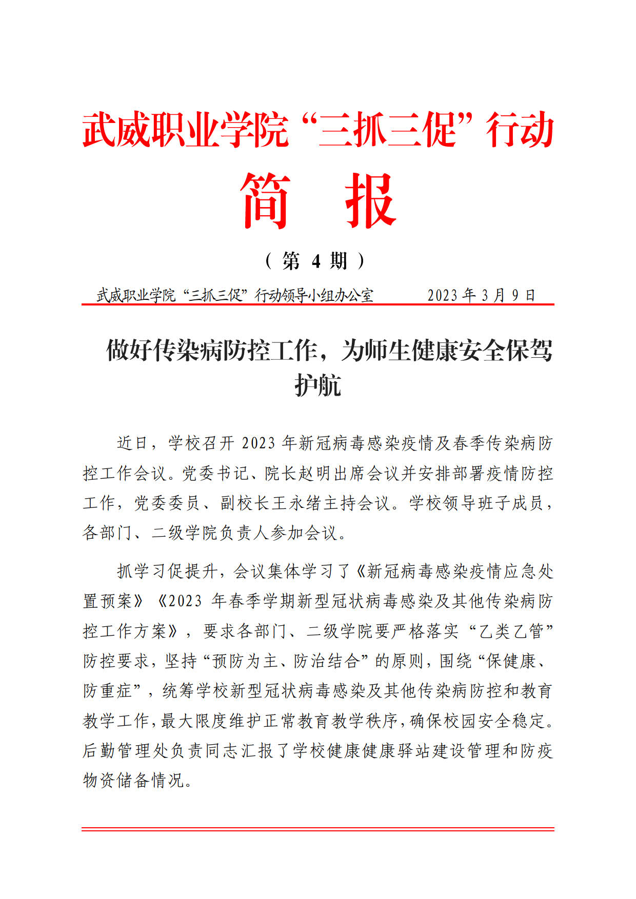 簡報第4期:做好傳染病防控工作,為師生健康安全保駕護航