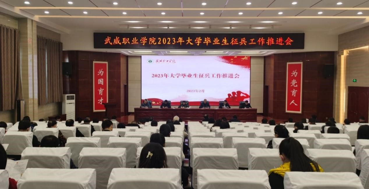 2月10日下午,學(xué)校2023年大學(xué)畢業(yè)生征兵工作推進(jìn)會在菁英廳召開,學(xué)校黨委委員、副校長王守云,涼州區(qū)人武部中校副部長楊海生出席會議。