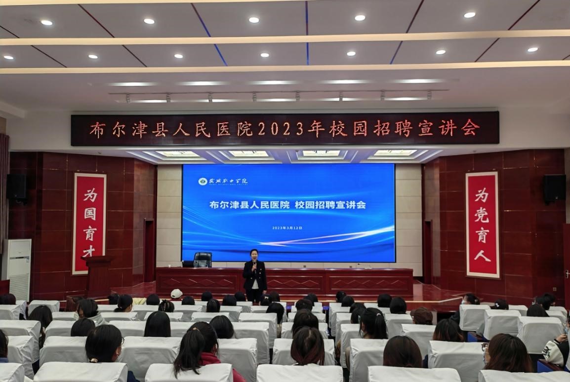 3月12日簽約儀式結(jié)束后,布爾津縣人民醫(yī)院黨委書記李娟在學(xué)生發(fā)展中心舉行了校園招聘宣講活動,護理學(xué)院約200名師生參加,部分學(xué)生現(xiàn)場達成實習(xí)就業(yè)意向。