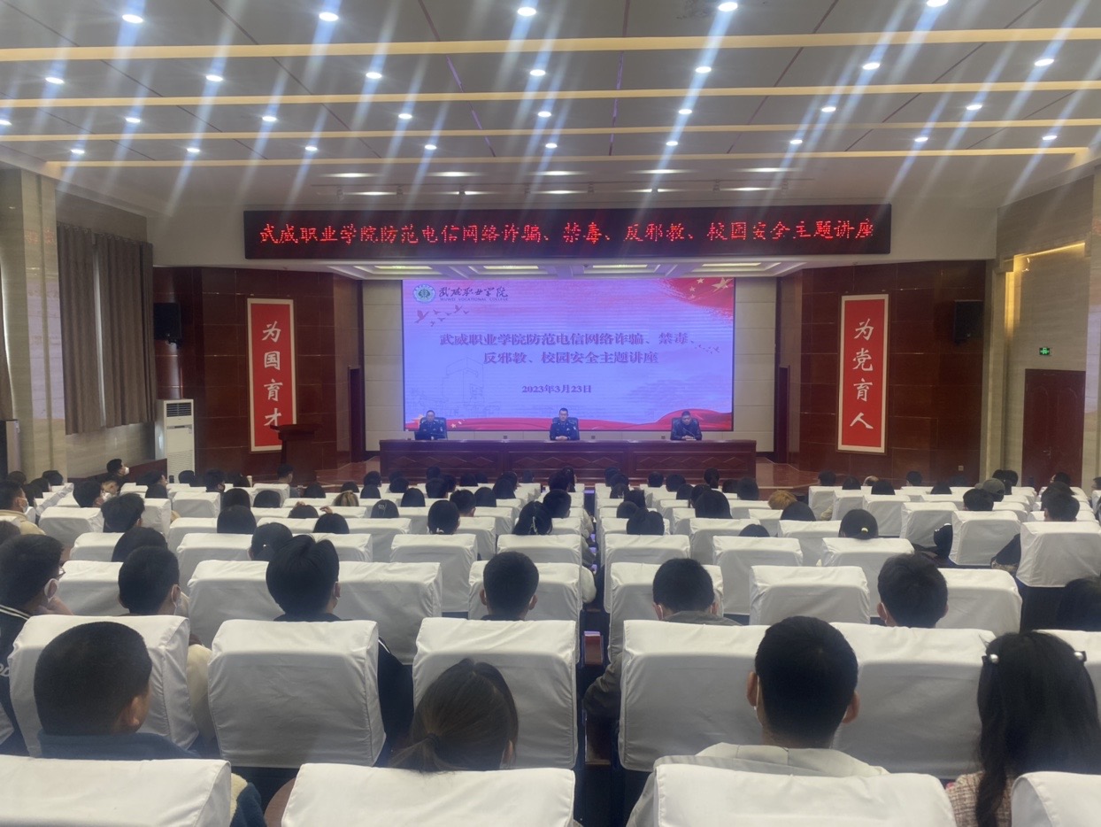 為進(jìn)一步加強(qiáng)防范電信網(wǎng)絡(luò)詐騙、禁毒、反邪教、校園安全宣傳教育工作,提高廣大師生防范意識(shí),3月24日下午,學(xué)校安全保衛(wèi)處邀請(qǐng)涼州區(qū)西關(guān)派出所民警為學(xué)校師生開展防范電信網(wǎng)絡(luò)詐騙、禁毒、反邪教、校園安全主題講座。講座由學(xué)校安全保衛(wèi)處負(fù)責(zé)人李欣主持,西關(guān)派出所副所長藺福鵬參加講座。