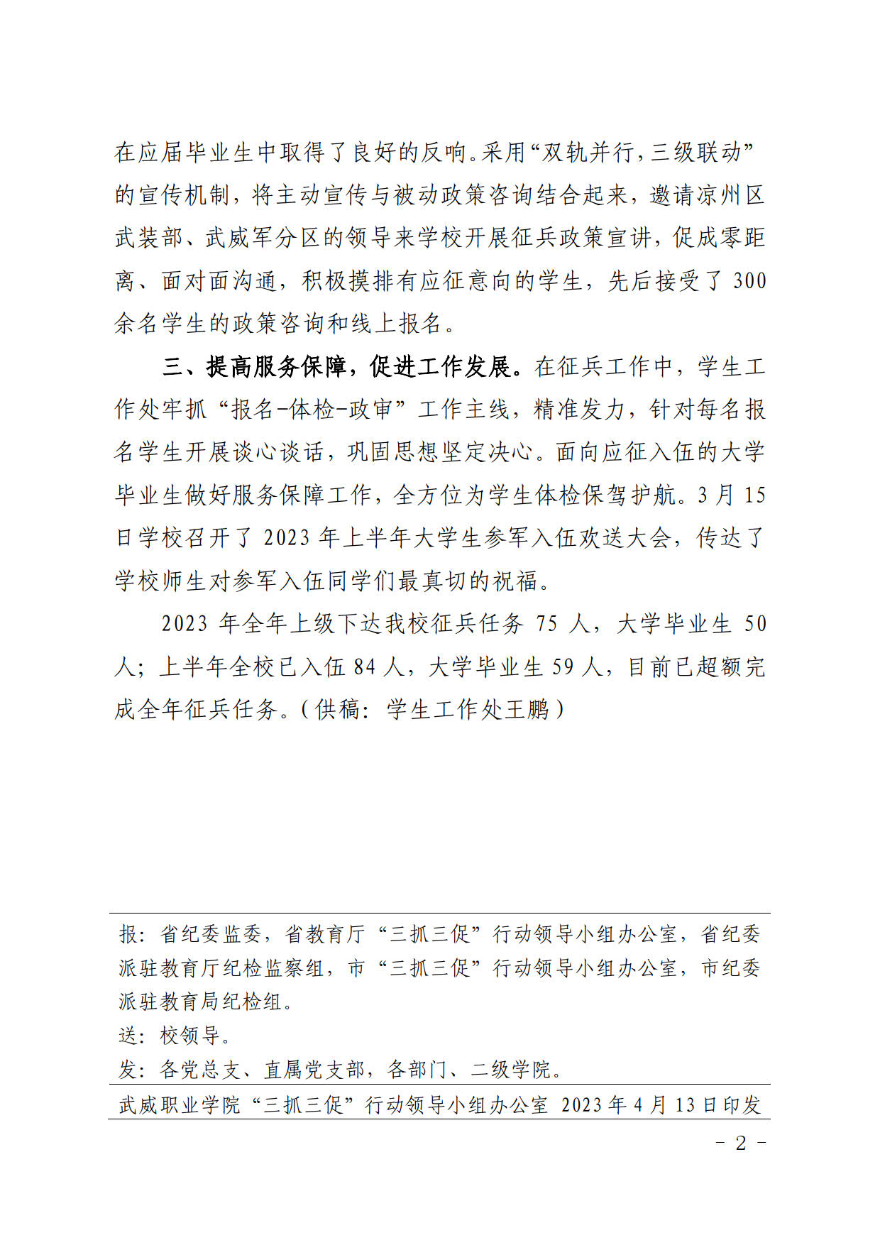 簡(jiǎn)報(bào)第14期:抓執(zhí)行促落實(shí) 多措并舉見成效 學(xué)校2023年春季征兵任務(wù)超額完成