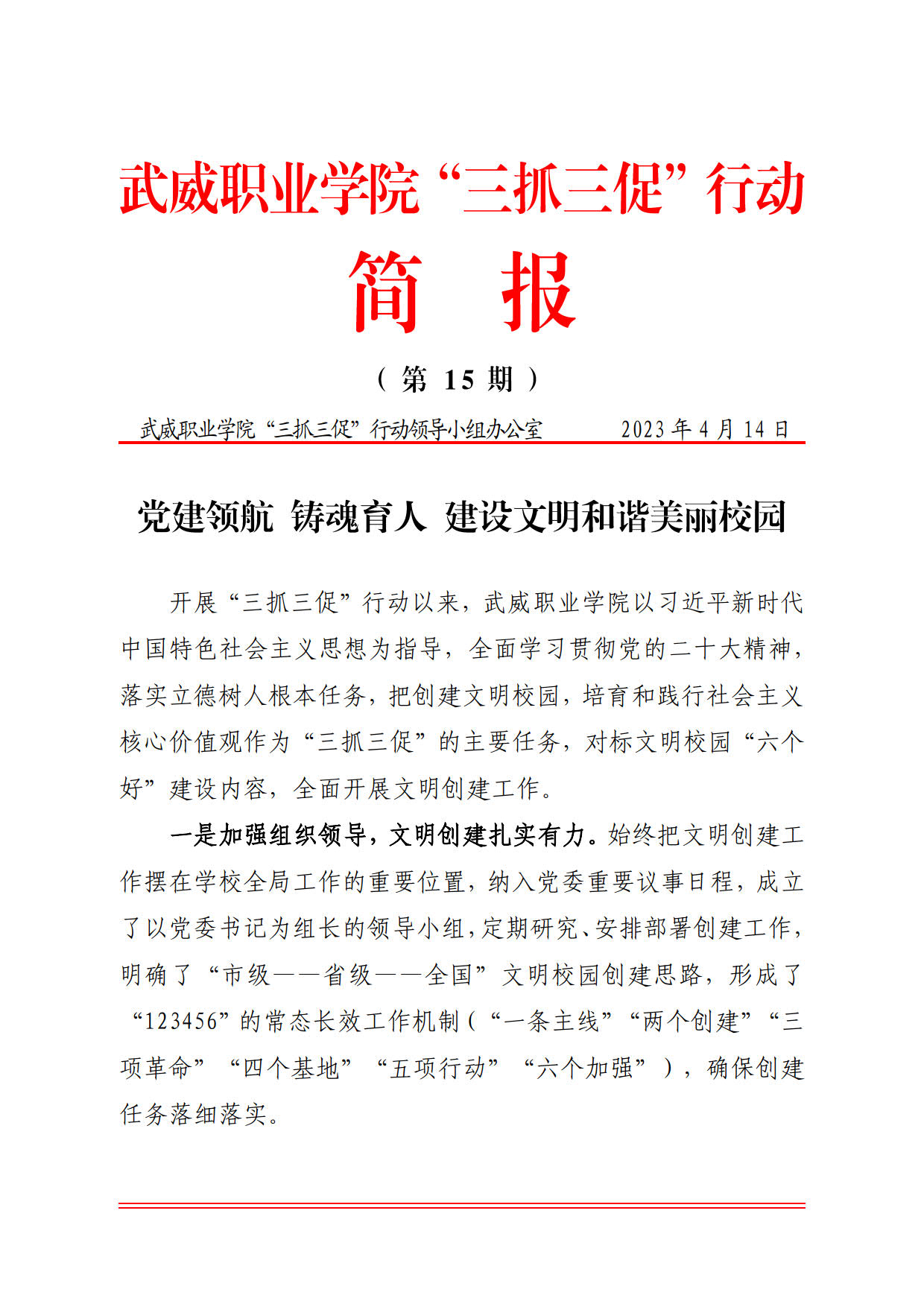 簡報第15期:黨建領(lǐng)航 鑄魂育人 建設(shè)文明和諧美麗校園