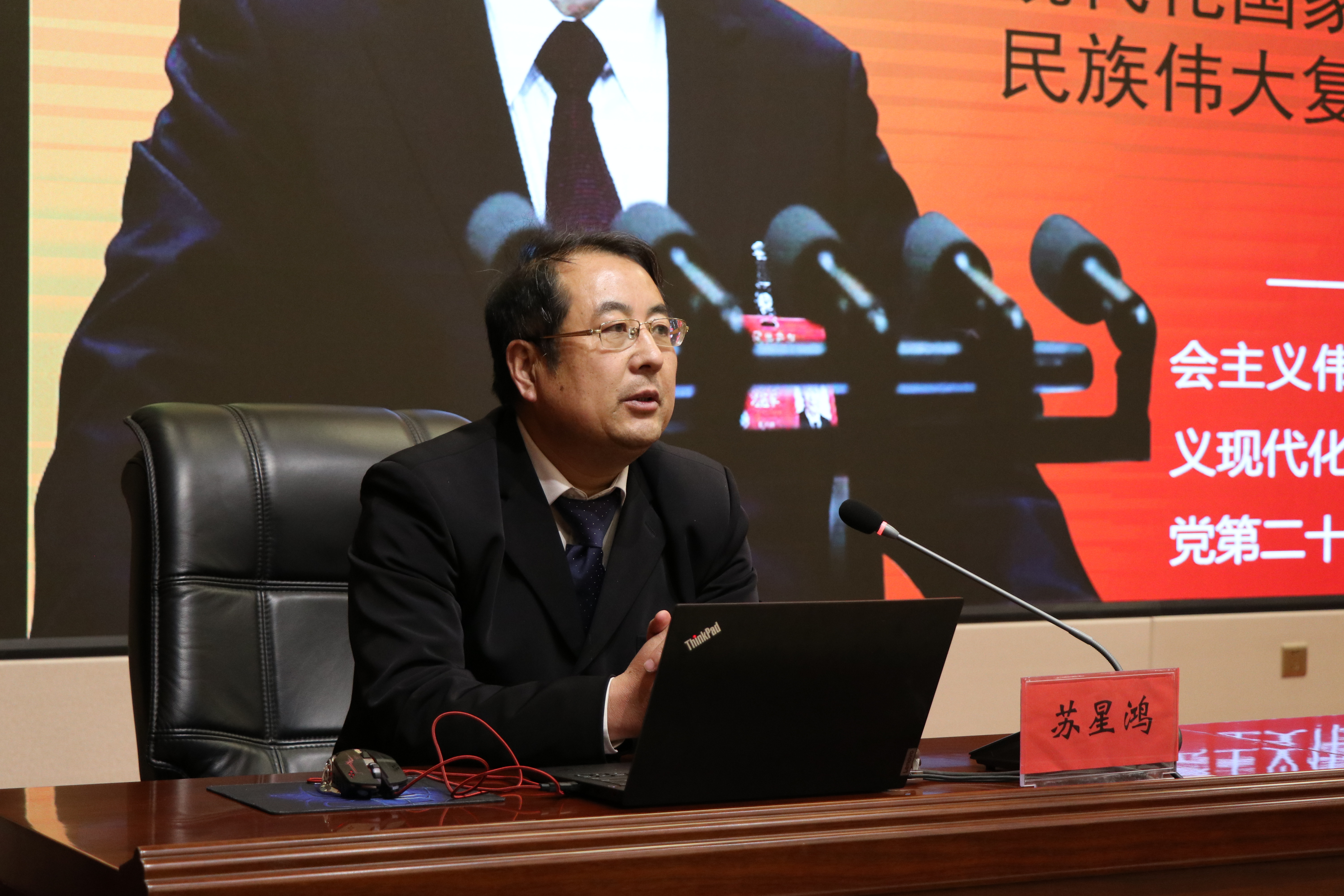 蘇星鴻教授以《深刻把握黨的二十大精神的核心要義》為題,從黨的二十大召開的歷史背景和重大意義、過去五年的工作和新時代十年的偉大變革、開辟馬克思主義中國化時代化新境界的科學(xué)內(nèi)涵、新時代新征程中國共產(chǎn)黨使命任務(wù)的豐富內(nèi)涵、以黨的自我革命推進(jìn)偉大的社會革命的實踐意義和“五個必由之路”的戰(zhàn)略意義六個方面進(jìn)行了深入淺出的闡述,對師生深刻理解黨的二十大精神具有很強(qiáng)的啟發(fā)意義。