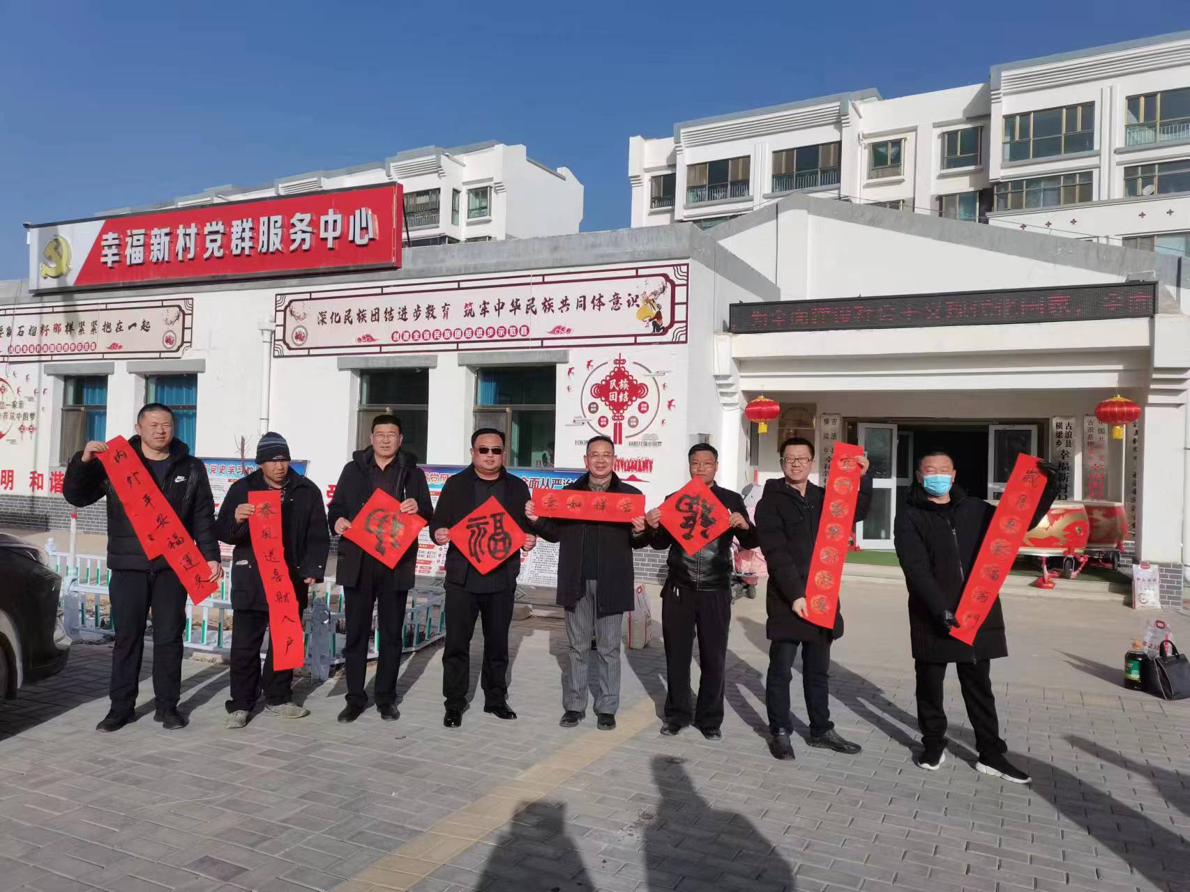 會(huì)后,志愿者為村民送上了春聯(lián)、福字?!昂眠\(yùn)常來(lái)添富貴,吉星高照永平安”“春歸大地人間暖,福降神州喜臨門”……一副副春聯(lián)承載著大家對(duì)新年的美好祝福,對(duì)未來(lái)幸福生活的期許和向往。村民群眾結(jié)伴而來(lái),仔細(xì)挑選每一副春聯(lián)。大家拿到散發(fā)淡淡墨香、帶著濃濃祝福的大紅春聯(lián)和福字,臉上洋溢著幸福的笑容。此次活動(dòng)共送出1400副春聯(lián),3000個(gè)福字,將新年祝福送到千家萬(wàn)戶,不僅弘揚(yáng)優(yōu)秀傳統(tǒng)文化,也營(yíng)造了濃濃的新春氣氛,增進(jìn)村民間的情感。