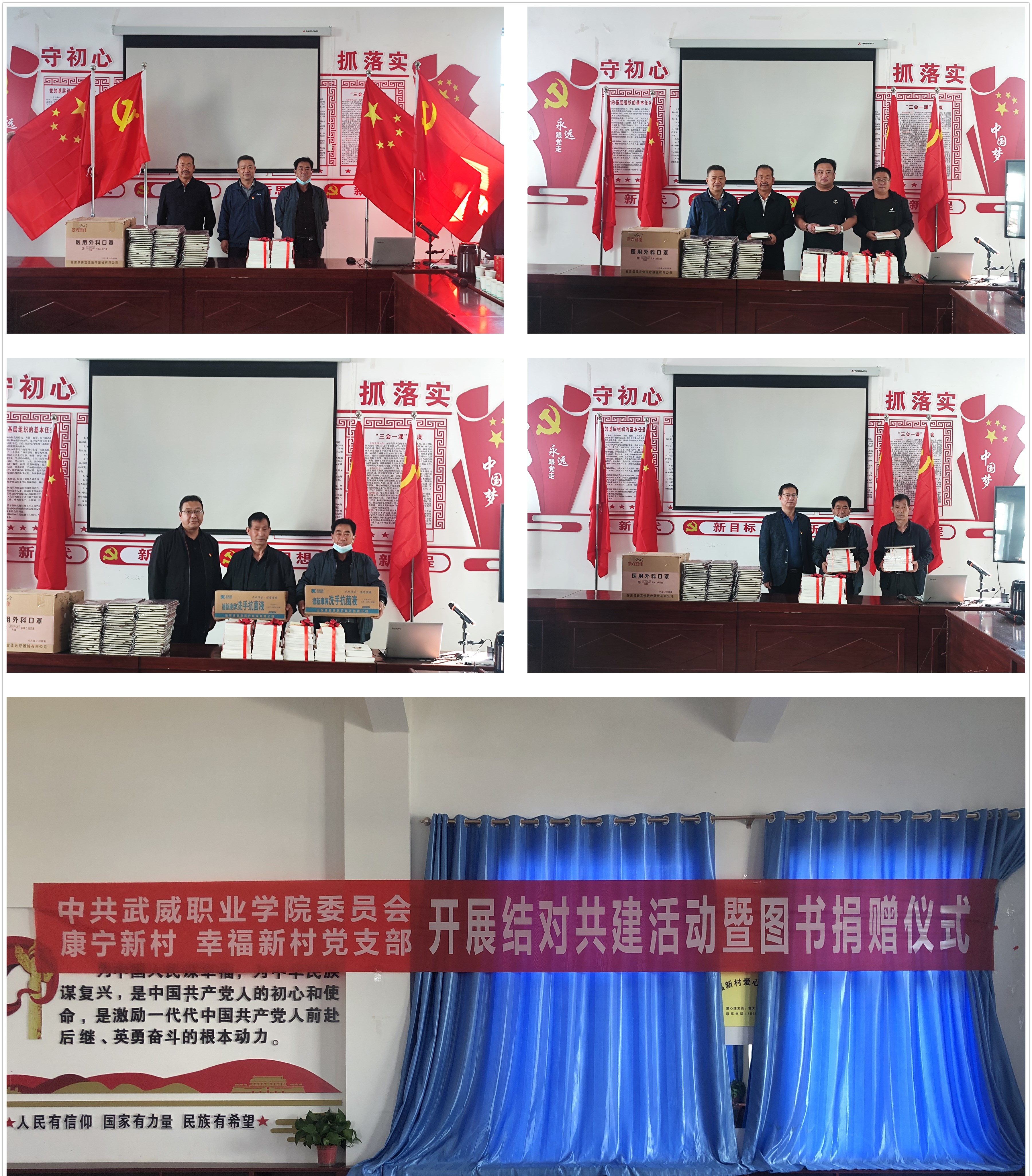鄉(xiāng)村要振興,組織是保證。組織振興是鄉(xiāng)村振興堅(jiān)實(shí)有力的政治保障。為進(jìn)一步加強(qiáng)幫扶村基層黨組織建設(shè),助推鄉(xiāng)村振興各項(xiàng)事業(yè)發(fā)展,9月22日,學(xué)校黨委書記、校長趙明,黨委委員、紀(jì)委書記、監(jiān)察專員陳曉煜,黨委委員、副校長張開禮等一行到古浪縣橫梁鄉(xiāng)康寧新村和幸福新村開展結(jié)對共建活動暨圖書捐贈儀式。