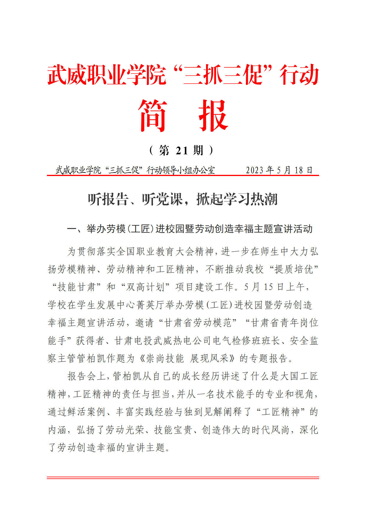 簡(jiǎn)報(bào)第21期:聽(tīng)報(bào)告,聽(tīng)黨課,掀起學(xué)習(xí)熱潮