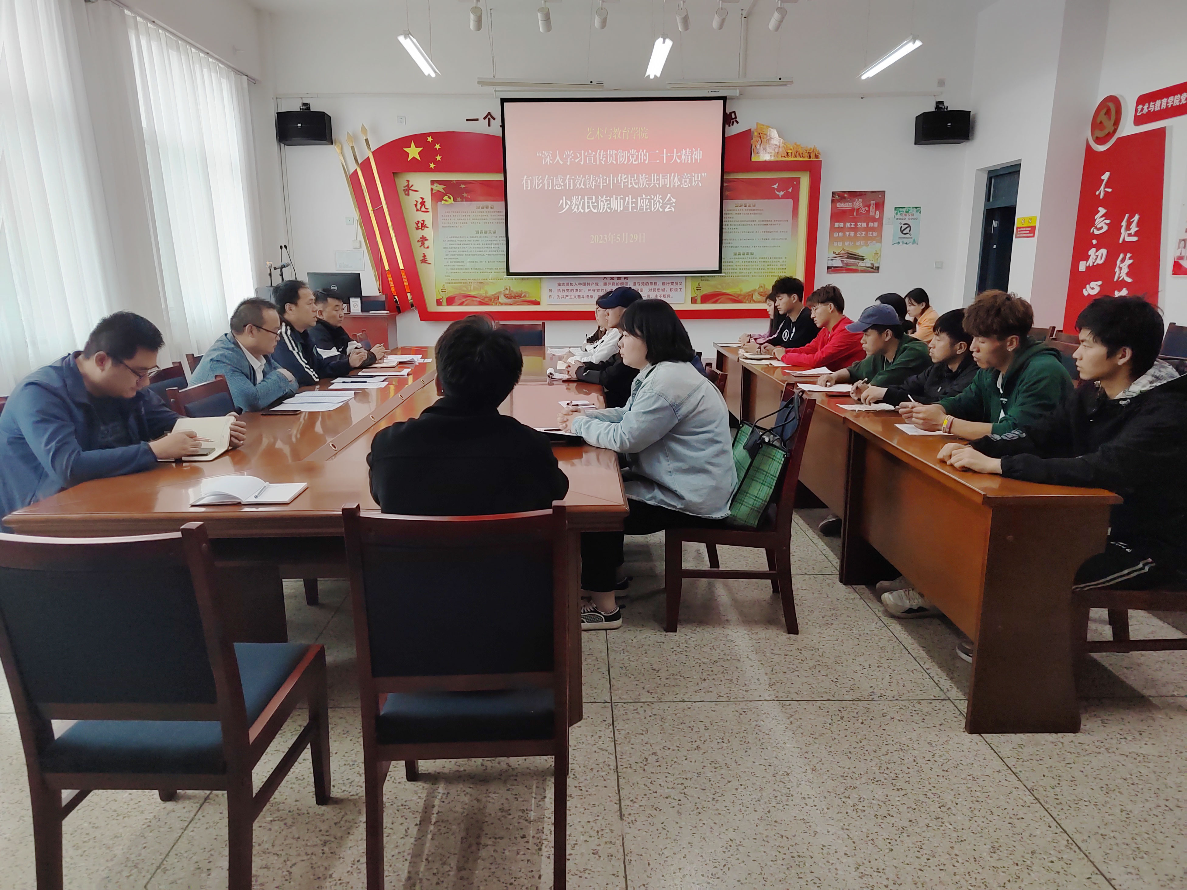 2023年5月29日下午,學(xué)院召開2023年第20個民族團結(jié)進步宣傳月各民族教師生座談會,2022級各專業(yè)各民族學(xué)生代表,教師生代表和輔導(dǎo)員、班主任參加會議,會議由學(xué)院黨總支書記王政主持。