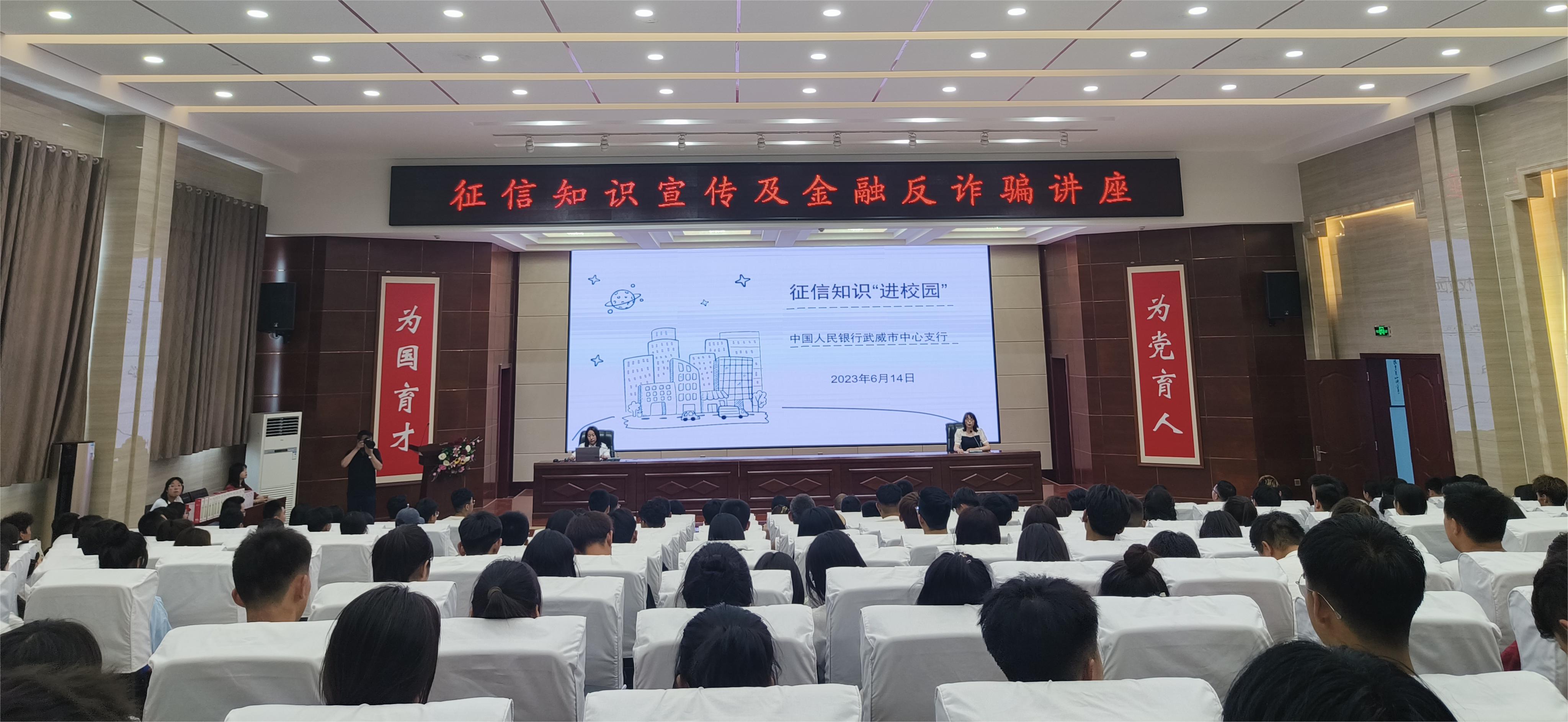 為普及金融、征信知識(shí),提高學(xué)生的誠(chéng)信意識(shí)和風(fēng)險(xiǎn)意識(shí),6月14日下午,在第16個(gè)全國(guó)“信用記錄關(guān)愛日”來臨之際,由我校和中國(guó)人民銀行武威市中心支行及10家商業(yè)銀行聯(lián)合主辦的“普及征信知識(shí),提高誠(chéng)信意識(shí)”為主題的征信知識(shí)進(jìn)校園宣傳活動(dòng)在學(xué)校大學(xué)生活動(dòng)中心前廣場(chǎng)和菁英廳舉行,學(xué)校500余名師生代表參加了本次活動(dòng)。