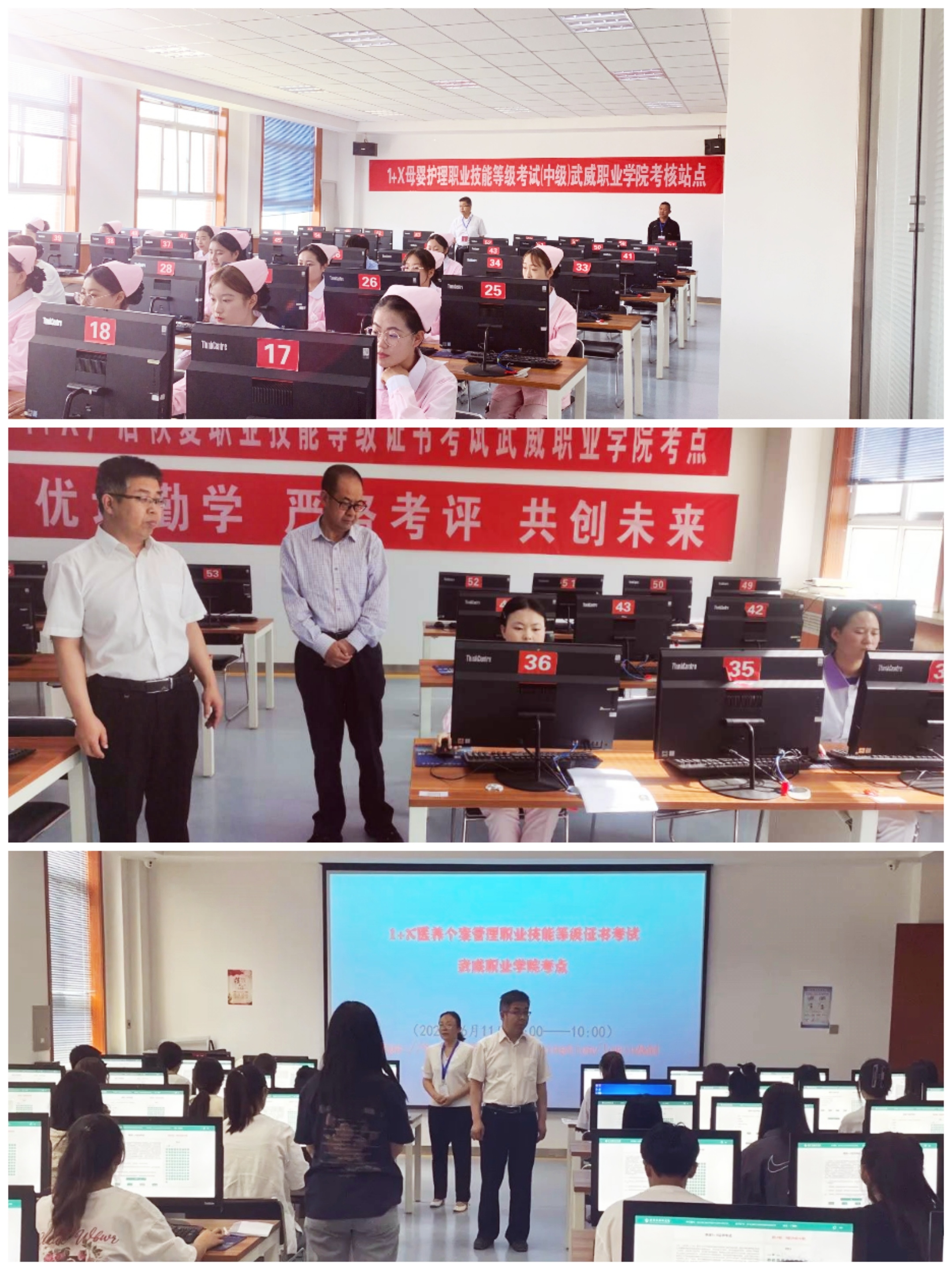 1+X職業(yè)技能等級(jí)證書(shū)(中級(jí))2023年第一批考試于6月10-11日在我校成功舉行,我校護(hù)理學(xué)院共有110名護(hù)理、助產(chǎn)和老年保健與管理專(zhuān)業(yè)的學(xué)生參加。