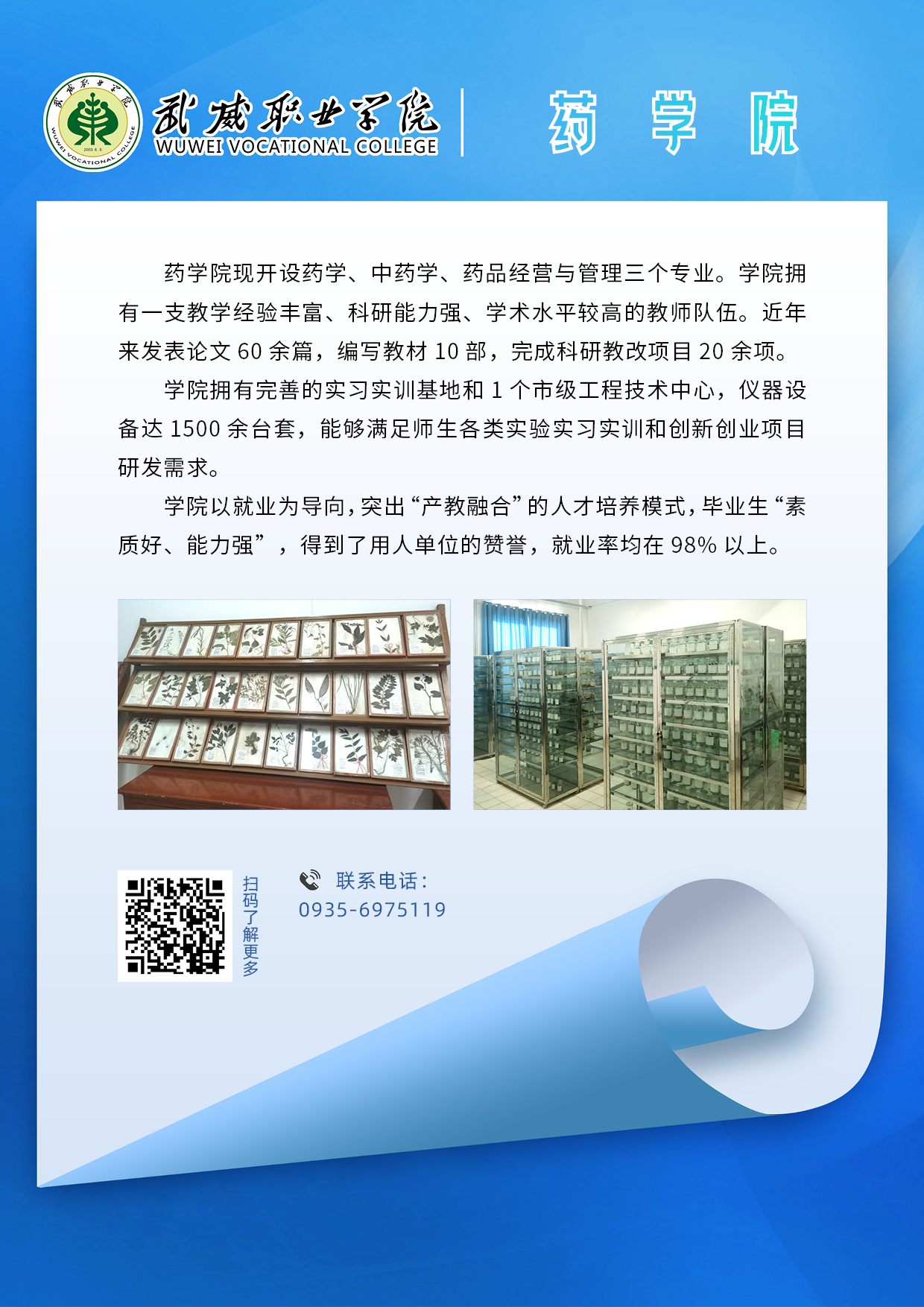 武威職業(yè)學(xué)院二級學(xué)院專業(yè)簡介丨藥學(xué)院