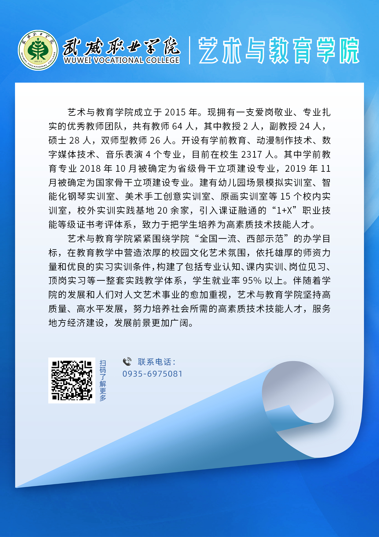 武威職業(yè)學(xué)院二級學(xué)院專業(yè)簡介丨藝術(shù)與教育學(xué)院