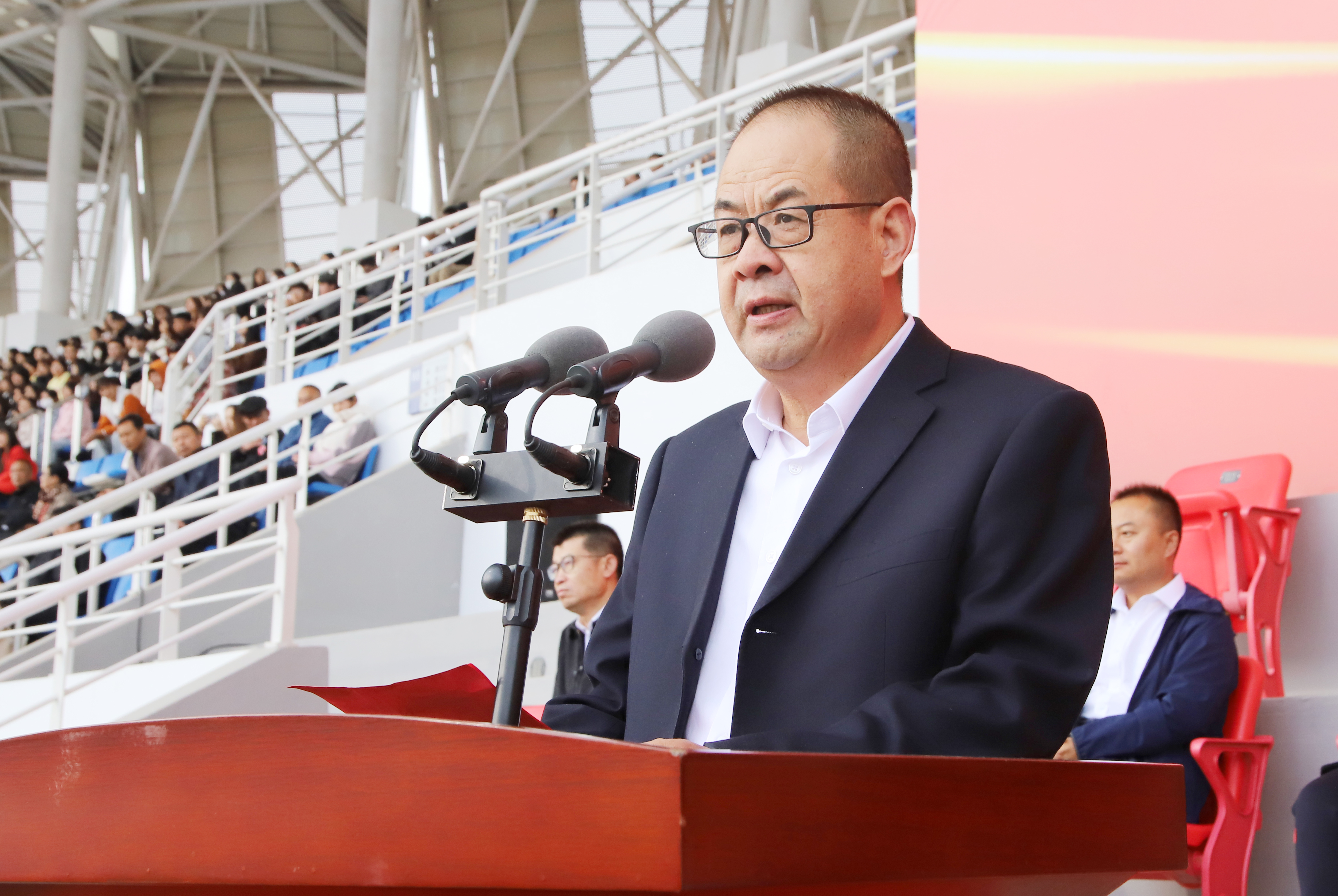 王宏宣布武威職業(yè)學(xué)院2023年田徑運(yùn)動(dòng)會(huì)開(kāi)幕。