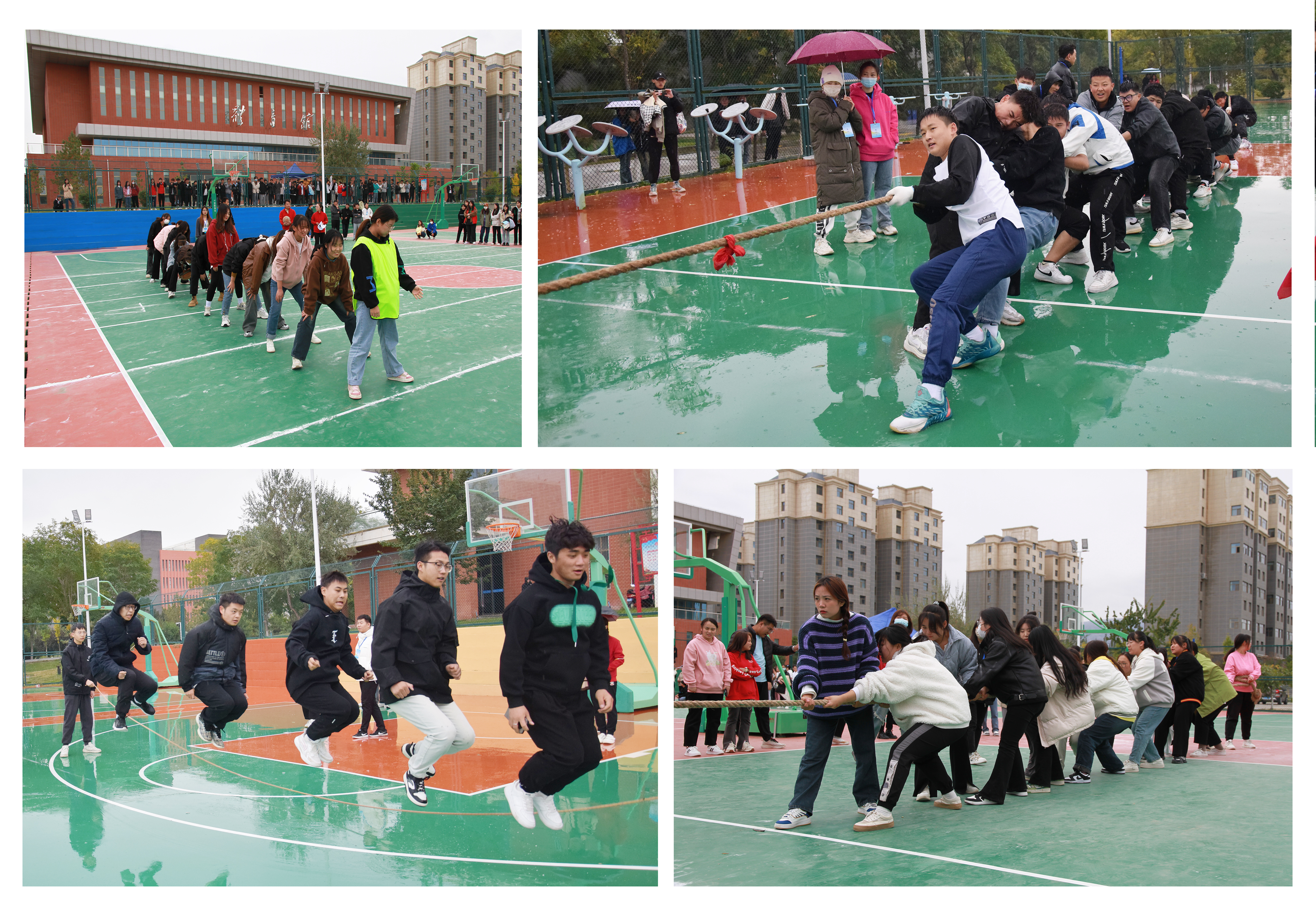 比賽場(chǎng)上,運(yùn)動(dòng)員們不畏風(fēng)雨、奮勇拼搏、超越自我。觀眾席上,同學(xué)們用熱情的掌聲、歡呼聲向運(yùn)動(dòng)員加油助威。