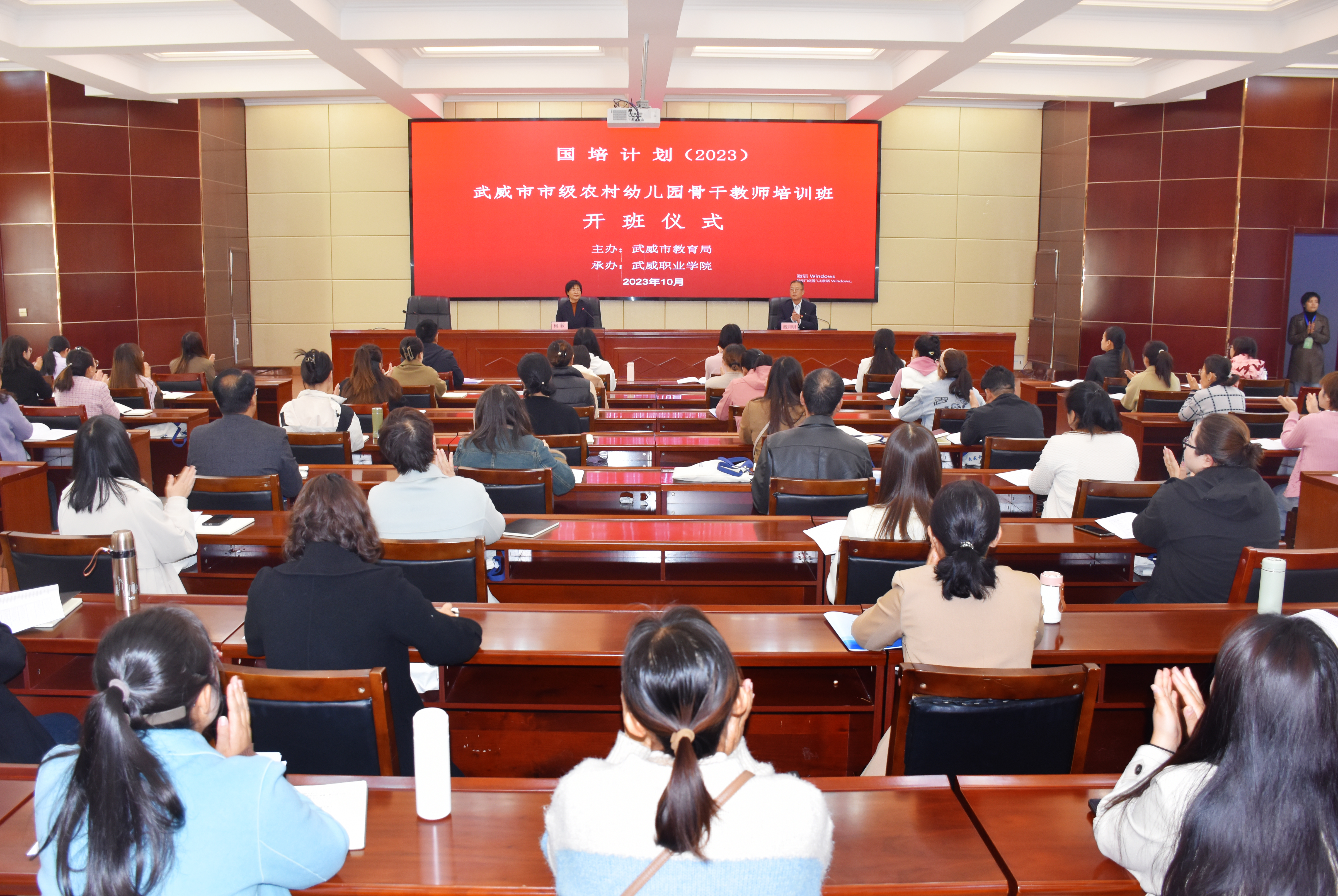 2023年10月26日上午,由武威市教育局主辦、武威職業(yè)學(xué)院承辦的“國培計劃(2023)”武威市市級農(nóng)村幼兒園骨干教師能力提升培訓(xùn)在學(xué)院行樹樓北側(cè)報告廳舉行開班儀式。武威職業(yè)學(xué)院黨委委員、副校長何毅出席開班儀式。部分授課專家、培訓(xùn)組織管理工作人員及65名參訓(xùn)幼兒園骨干教師參加開班儀式。開班儀式由武威職業(yè)學(xué)院繼續(xù)教育學(xué)院院長魏潤明主持。