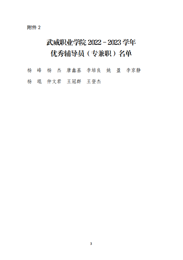 武威職業(yè)學院關于2022-2023學年國家勵志獎學金候選人的公示