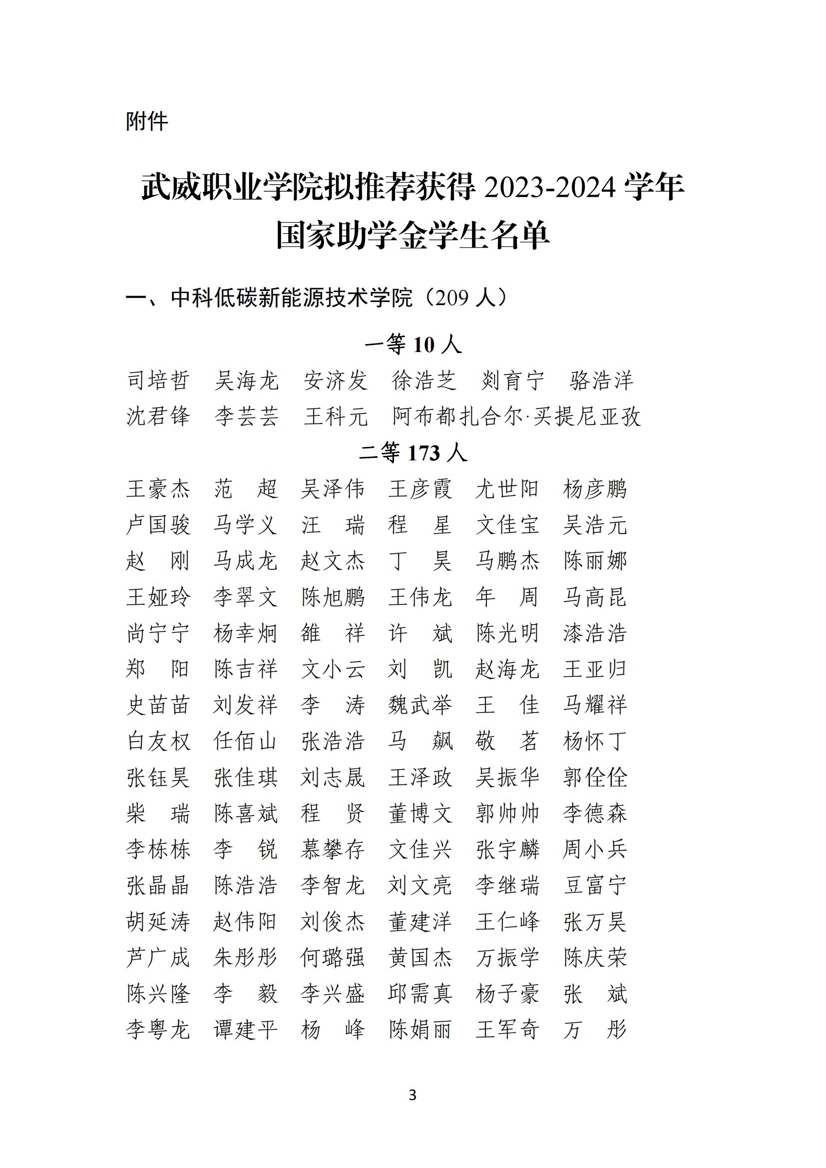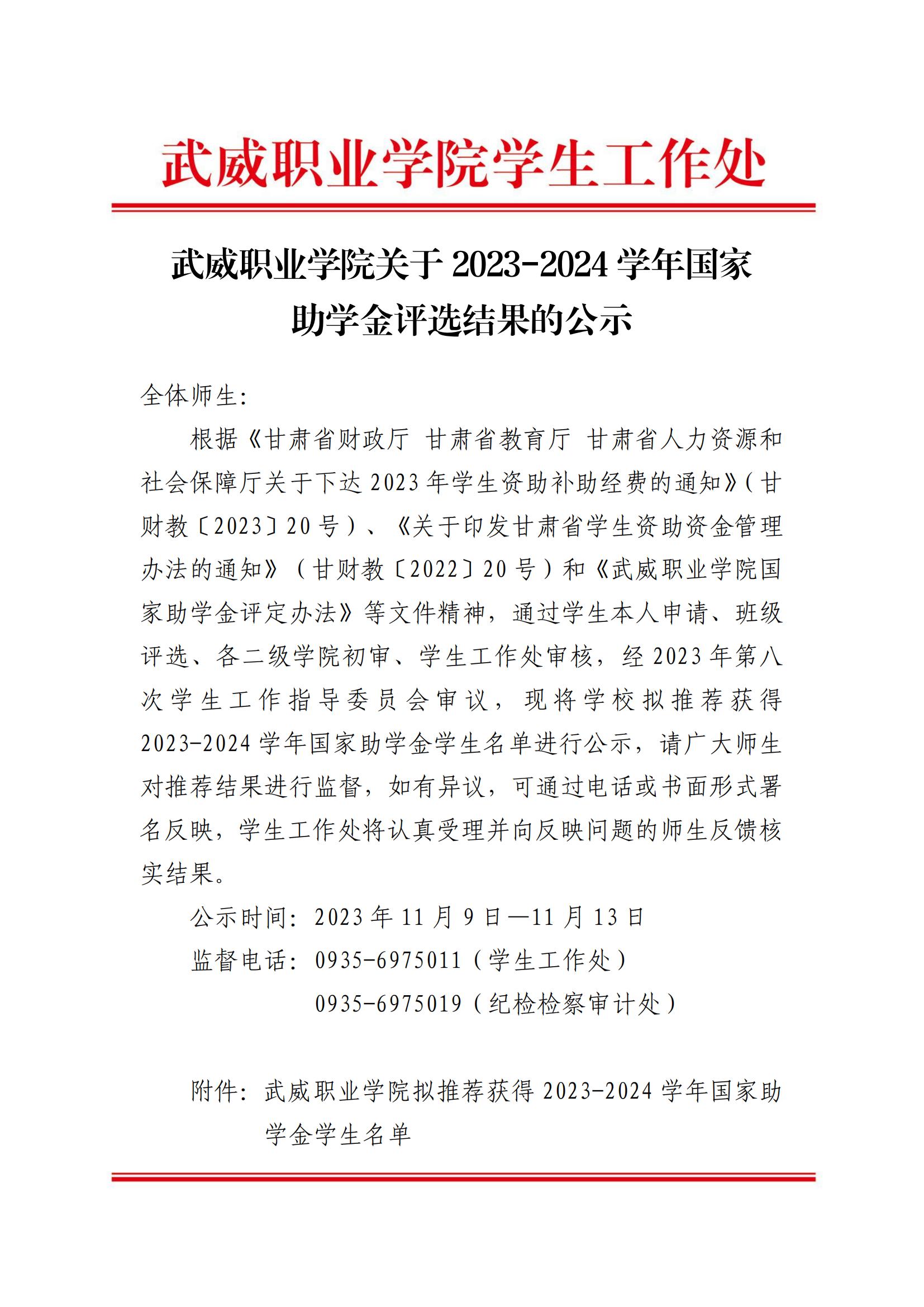 武威職業(yè)學院關于2023-2024學年國家助學金評選結(jié)果的公示