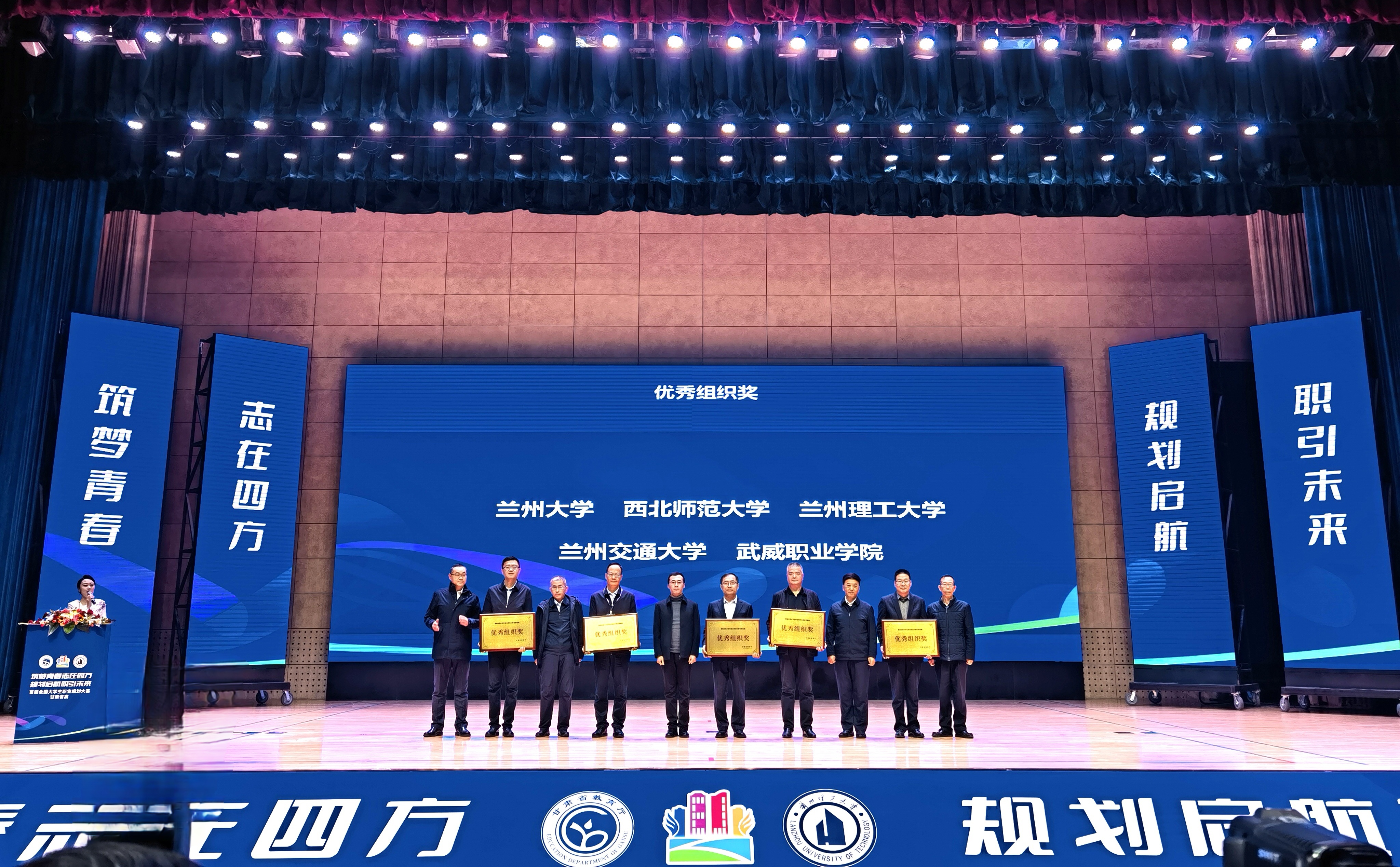 11月17日上午,“筑夢(mèng)青春志在四方,規(guī)劃啟航職引未來”—首屆全國大學(xué)生職業(yè)規(guī)劃大賽甘肅省賽閉幕式暨頒獎(jiǎng)儀式在蘭州理工大學(xué)體育館舉行。我校黨委委員、副校長王守云,招生就業(yè)處負(fù)責(zé)人董鵬帶隊(duì)參加閉幕式暨頒獎(jiǎng)儀式。在職教組省級(jí)決賽中,兩個(gè)賽道分別設(shè)金獎(jiǎng)5項(xiàng),銀獎(jiǎng)10項(xiàng),銅獎(jiǎng)15項(xiàng)。我校代表隊(duì)榮獲金獎(jiǎng)2項(xiàng)、銀獎(jiǎng)4項(xiàng)、銅獎(jiǎng)4項(xiàng),獲獎(jiǎng)作品數(shù)目為全省第一。其中,經(jīng)濟(jì)管理學(xué)院2022級(jí)旅游管理專業(yè)學(xué)生顏汝榮獲成長賽道金獎(jiǎng)第一名,并在閉幕式上作匯報(bào)展演。