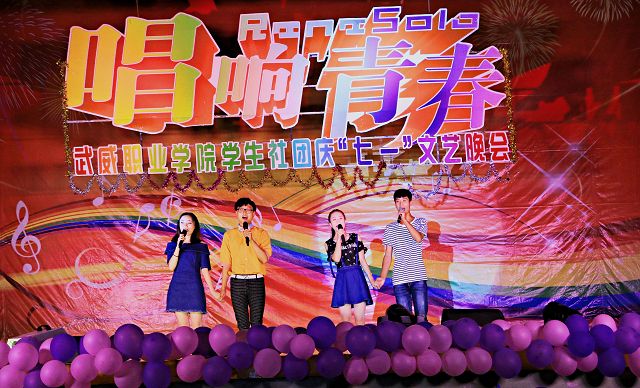 為紀(jì)念建黨95周年,6月22日晚,武威職業(yè)學(xué)院學(xué)生社團(tuán)在學(xué)院禮堂舉辦了慶“七一”文藝晚會。學(xué)院副院長潘玉華,學(xué)生工作處、招生就業(yè)處、工會、院團(tuán)委負(fù)責(zé)人和800多名師生一同觀看了演出。