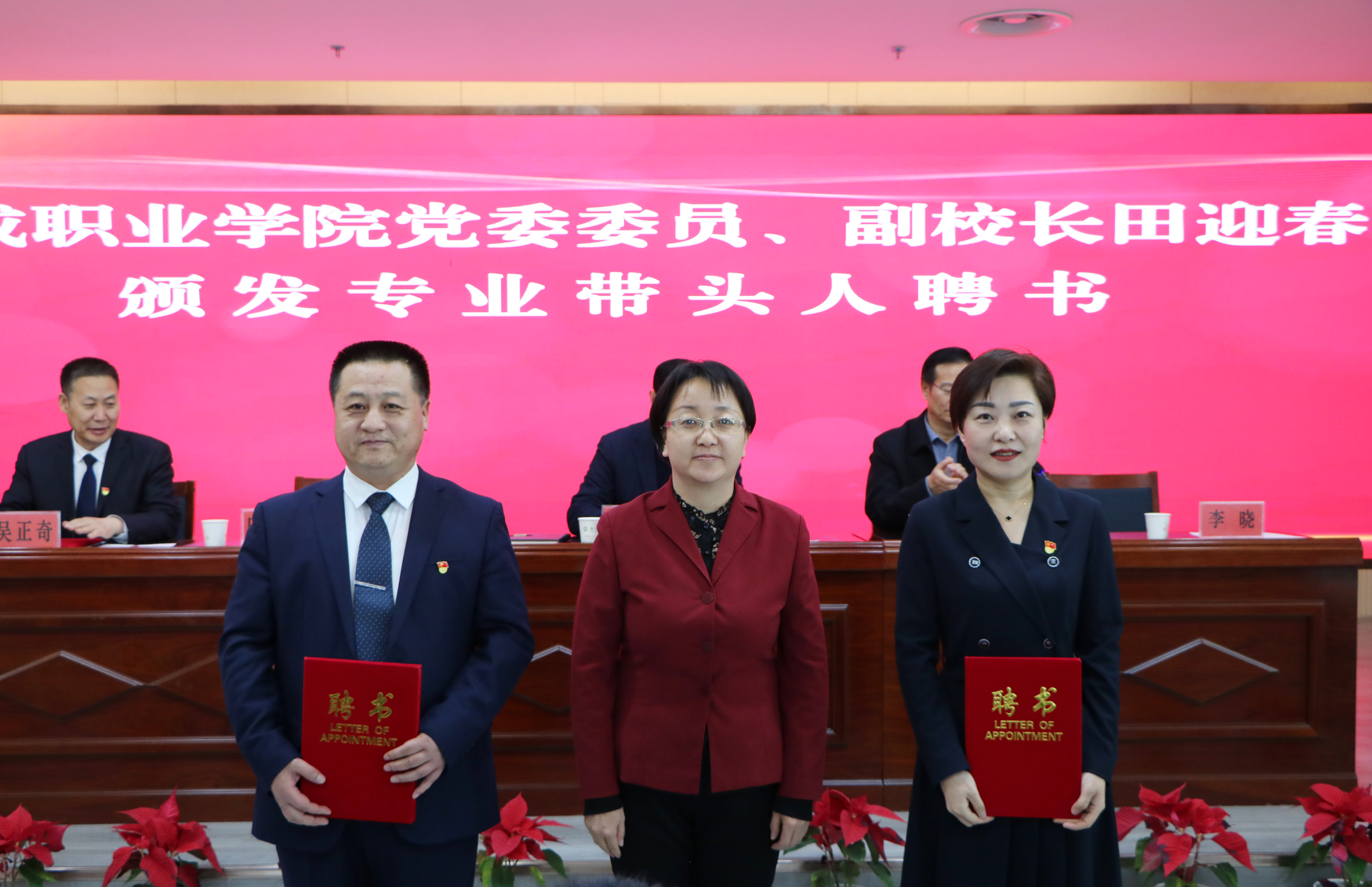 張開(kāi)禮宣讀了聘任文件。王宏、張開(kāi)禮和田迎春分別為特聘教授、客座教授和專(zhuān)業(yè)帶頭人頒發(fā)了聘書(shū)。