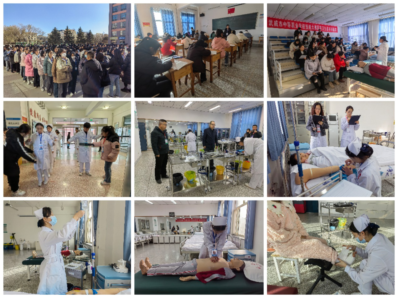 12月4日至8日,2024年武威市中等職業(yè)學(xué)校技能大賽護(hù)理技能賽項(xiàng)在學(xué)校卓行樓如期舉行,來自全市4所中等職業(yè)院校的675名選手參加了比賽。比賽設(shè)置理論考試和技能考試兩項(xiàng)內(nèi)容,技能考試包括心肺復(fù)蘇、靜脈輸液、右踝關(guān)節(jié)包扎三項(xiàng)護(hù)理技能操作。