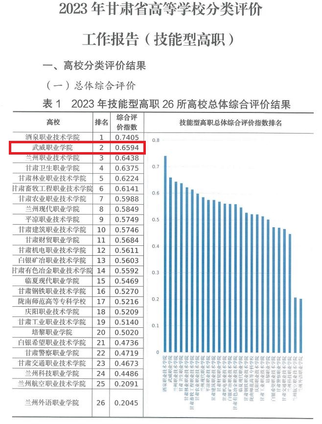 武威職業(yè)學(xué)院2023年高校分類評價(jià)結(jié)果綜合排名第二