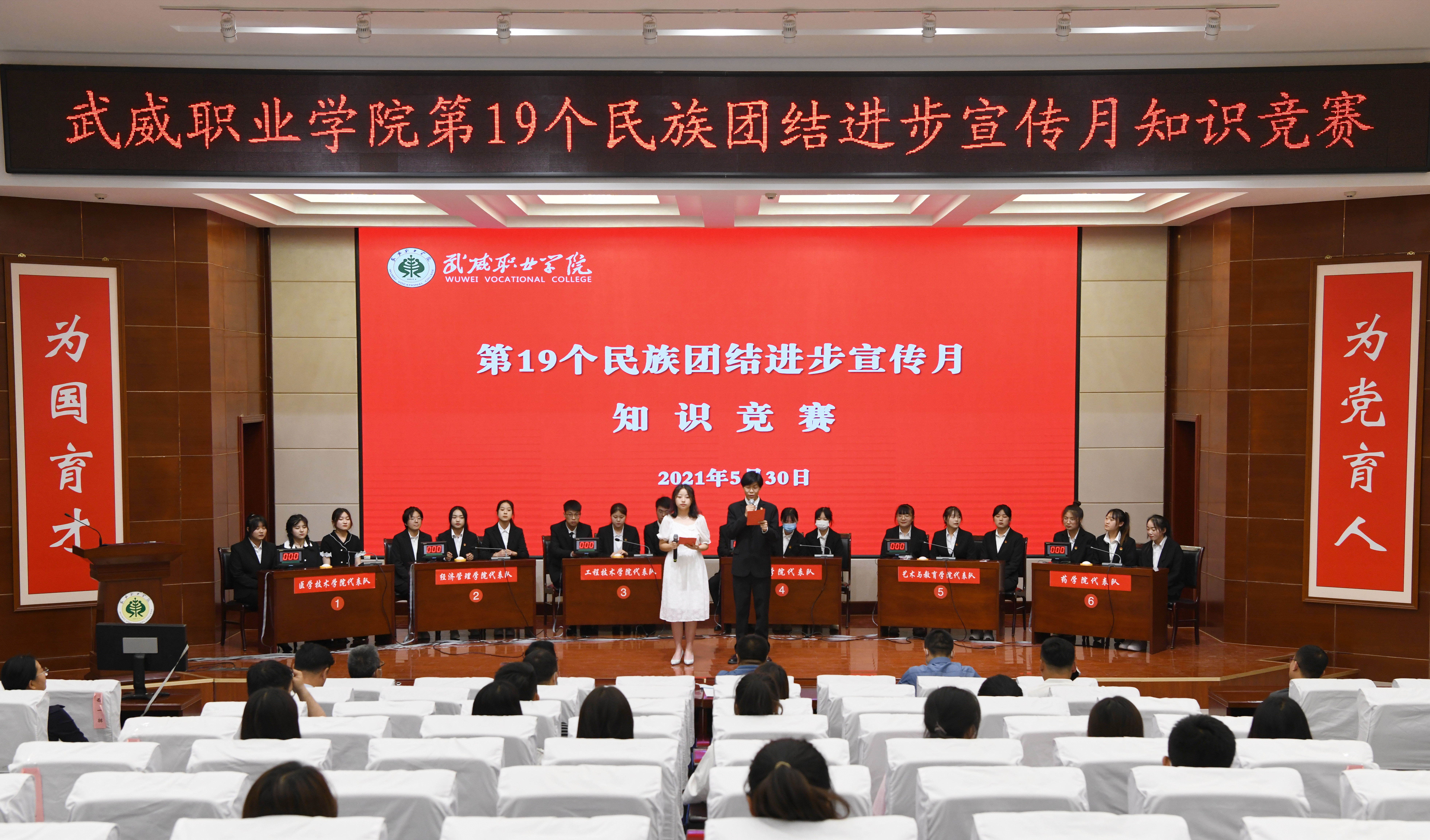 為進一步鑄牢中華民族共同體意識,營造民族團結一家親的良好氛圍,迎接黨的二十大勝利召開,5月30日下午,學校在學生發(fā)展中心菁英廳舉辦了以“鑄牢中華民族共同體意識 喜迎黨的二十大召開”為主題的知識競賽。學院黨委委員、副校長何毅出席并為獲獎團隊頒獎。
