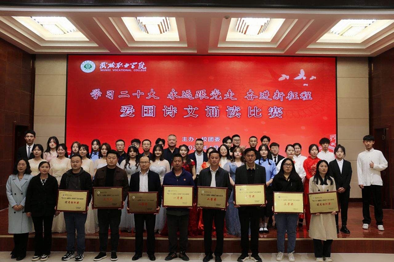 大賽于3月啟動(dòng),歷時(shí)一個(gè)月,各二級(jí)學(xué)院經(jīng)過(guò)初賽評(píng)比推選出9個(gè)優(yōu)秀節(jié)目入圍決賽。比賽現(xiàn)場(chǎng),各參賽隊(duì)以“學(xué)習(xí)二十大、永遠(yuǎn)跟黨走、奮進(jìn)新征程”為主題,將傳承經(jīng)典詩(shī)文和弘揚(yáng)愛(ài)國(guó)主義精神結(jié)合,誦詩(shī)抒情、借詞言志,熱情謳歌中國(guó)共產(chǎn)黨不懈奮斗的光輝歷程,全面展現(xiàn)新時(shí)代青年以夢(mèng)為馬,不負(fù)韶華的青春風(fēng)貌。校團(tuán)委原創(chuàng)編排表演的節(jié)目《追夢(mèng)八步沙,奮斗正青春》,深情動(dòng)人,感染全場(chǎng),歌頌了“六老漢”矢志艱苦奮斗的隴人品格,抒發(fā)了當(dāng)代青年永跟黨走,青春建功的豪情壯志。富余藝術(shù)感染力的經(jīng)典吟誦,穿插舞蹈、劇情和紅歌演唱,為廣大師生呈現(xiàn)了一場(chǎng)視聽(tīng)盛宴。