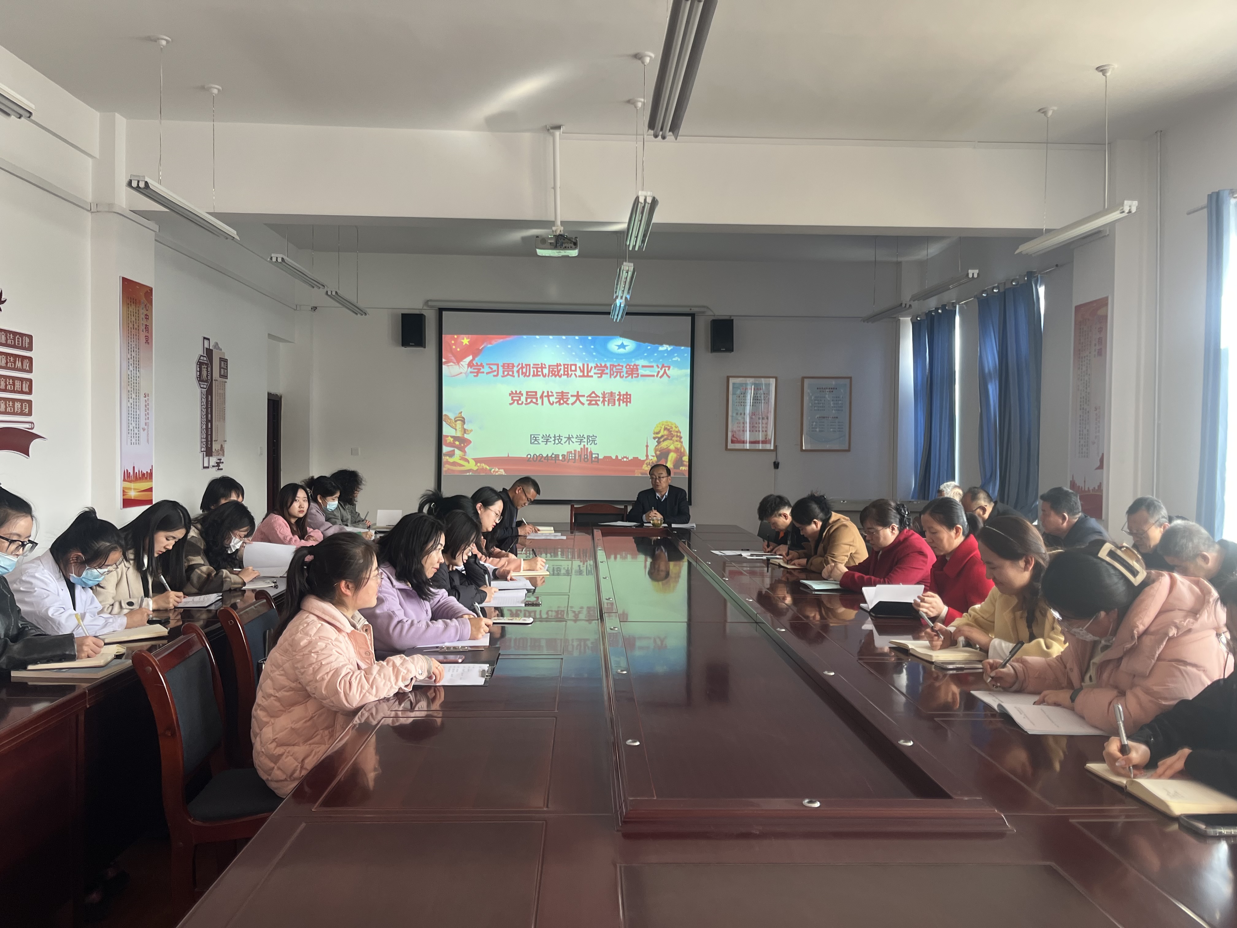 3月13日,中國(guó)共產(chǎn)黨武威職業(yè)學(xué)院第二次代表大會(huì)在我校召開(kāi)。為學(xué)習(xí)貫徹會(huì)議精神,3月18日下午,醫(yī)學(xué)技術(shù)學(xué)院召開(kāi)全體教職工會(huì)議傳達(dá)學(xué)校第二次代表大會(huì)精神,會(huì)議以“學(xué)習(xí)貫徹中國(guó)共產(chǎn)黨武威職業(yè)學(xué)院第二次代表大會(huì)精神”為主題,結(jié)合醫(yī)學(xué)技術(shù)學(xué)院實(shí)際提出落實(shí)舉措。