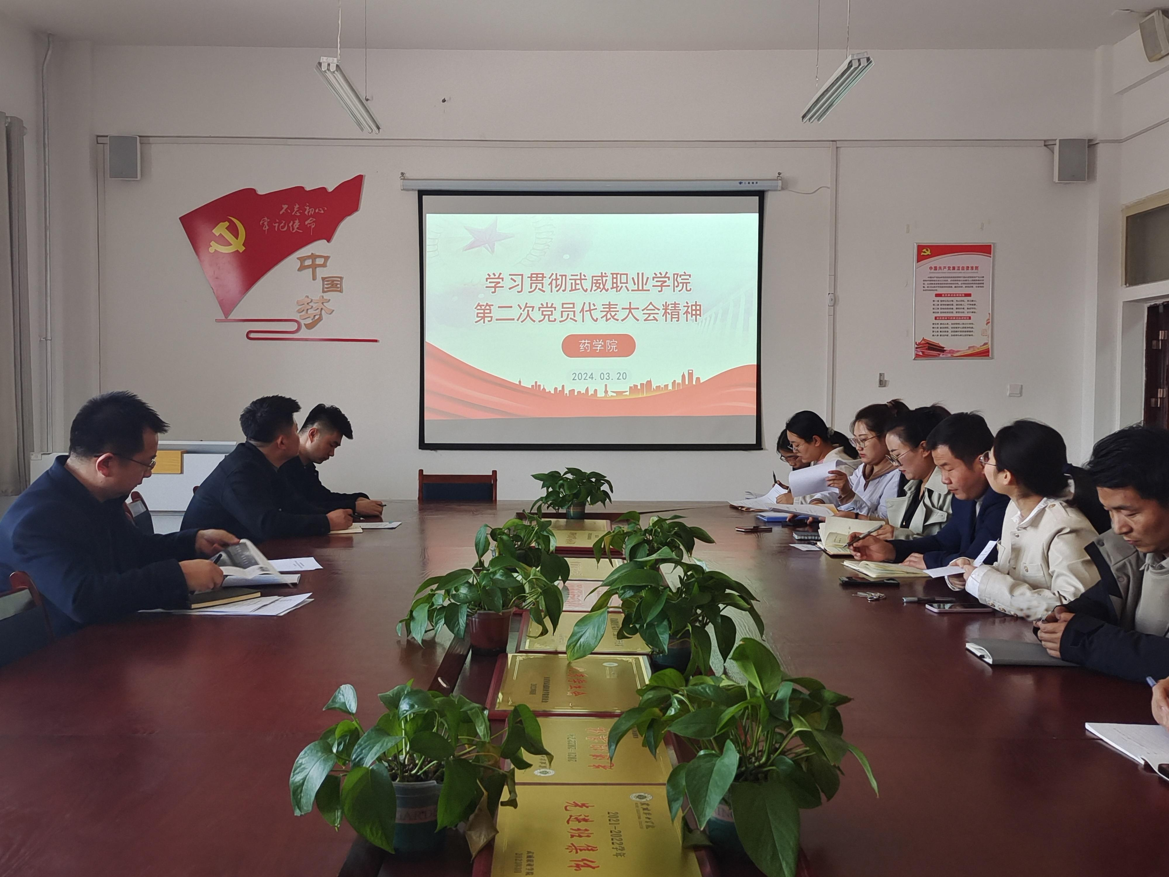 3月20日下午,藥學院召開專題會議學習宣傳貫徹武威職業(yè)學院第二次黨代會精神。會議由學院負責人楊建美主持,全體教職工參加了會議。