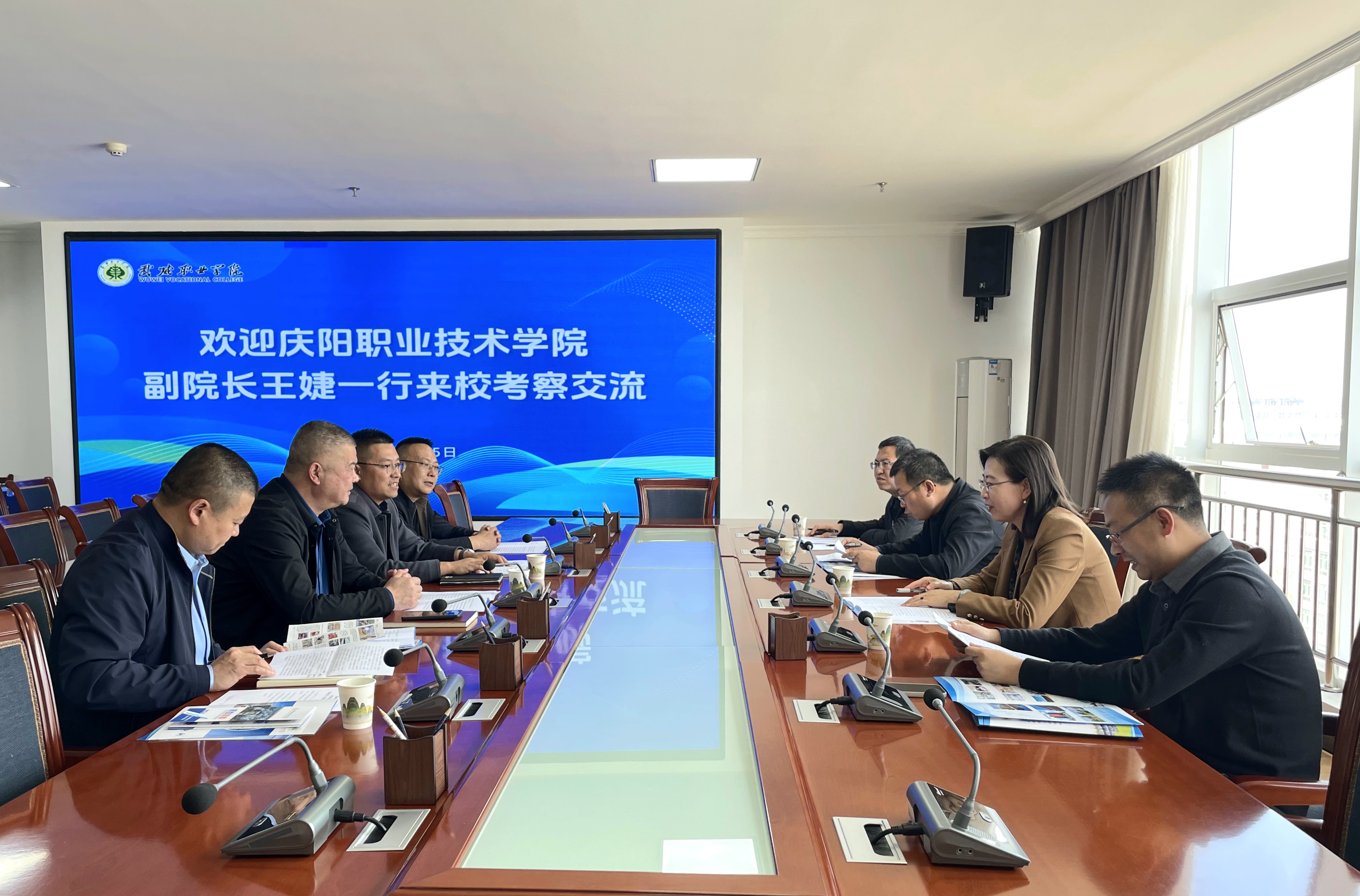 王守云對王婕一行來訪表示誠摯歡迎,并介紹了學(xué)校的基本情況、辦學(xué)宗旨、師資力量、學(xué)科建設(shè)、教學(xué)成果等情況。王婕介紹了慶陽職業(yè)技術(shù)學(xué)院的基本情況,希望兩校能進(jìn)一步加強交流溝通、互相學(xué)習(xí)、共同促進(jìn)職業(yè)教育高質(zhì)量發(fā)展。