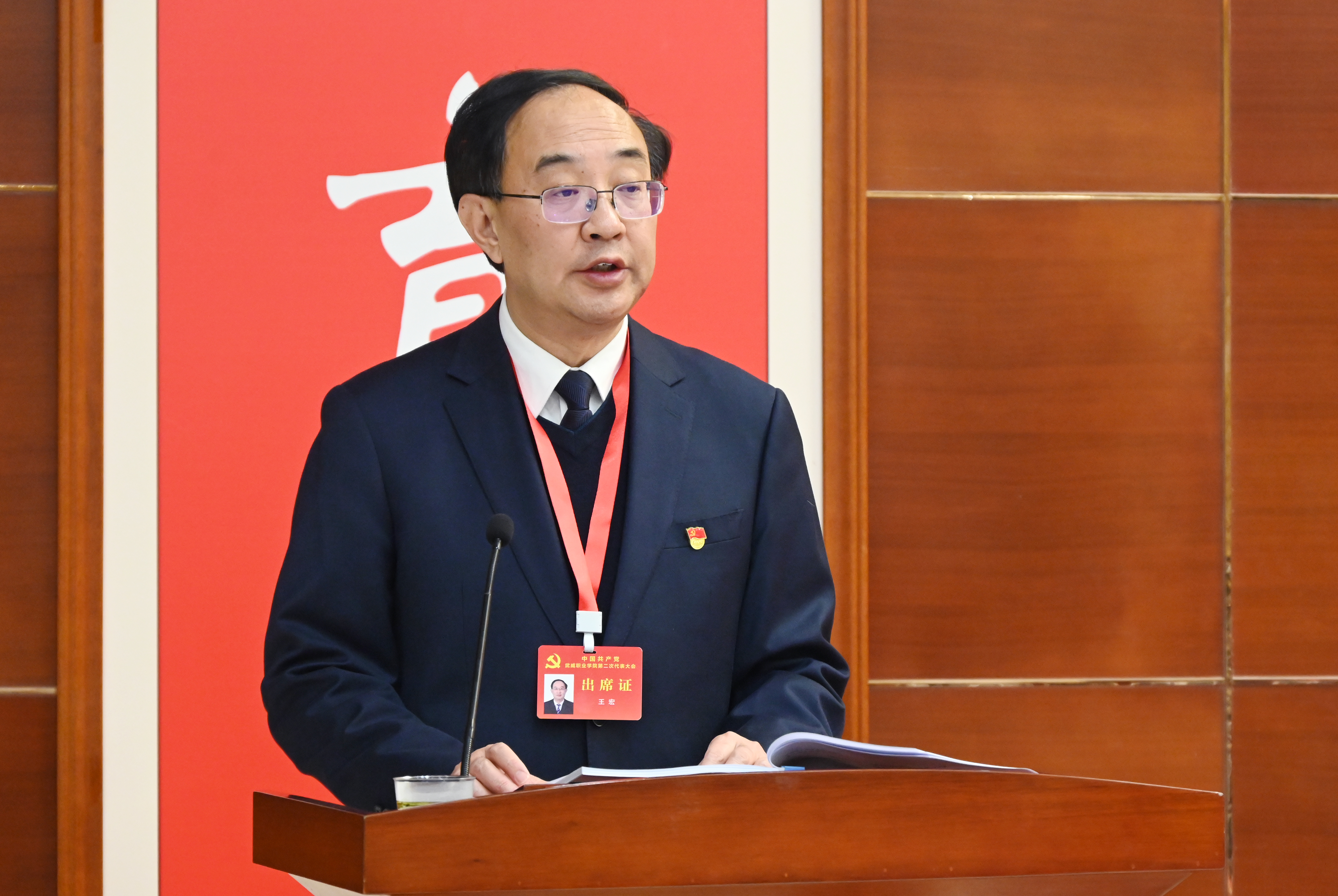 王宏同志代表中國(guó)共產(chǎn)黨武威職業(yè)學(xué)院第一屆委員會(huì)向大會(huì)作報(bào)告