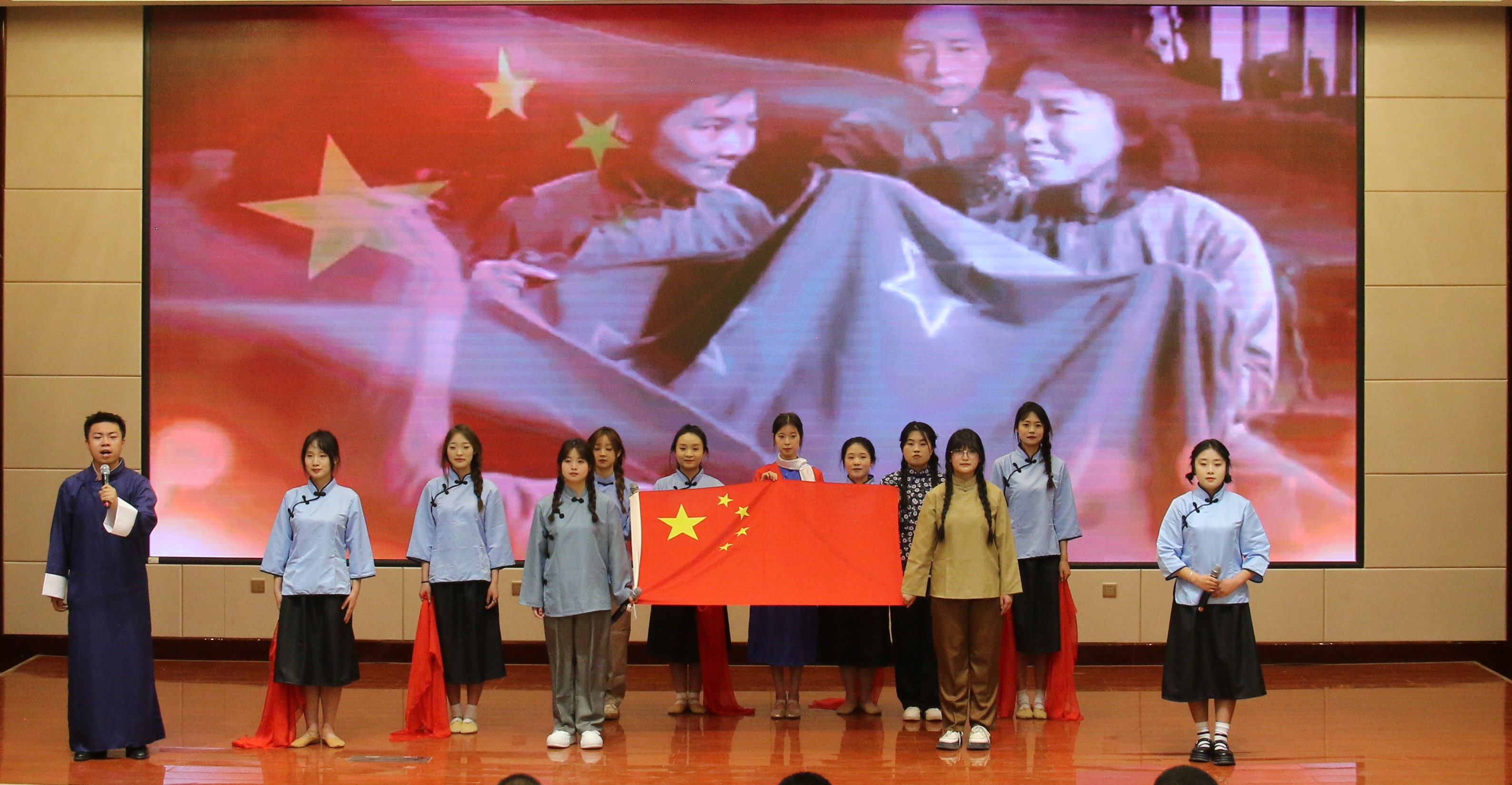 4月25日晚,學(xué)?!凹o(jì)念‘五四’運(yùn)動(dòng)105周年暨慶祝新中國成立75周年”愛國詩文誦讀比賽在菁英廳舉辦。黨委委員、副校長王守云出席活動(dòng),各二級學(xué)院團(tuán)委書記及學(xué)生代表220余人觀看比賽。