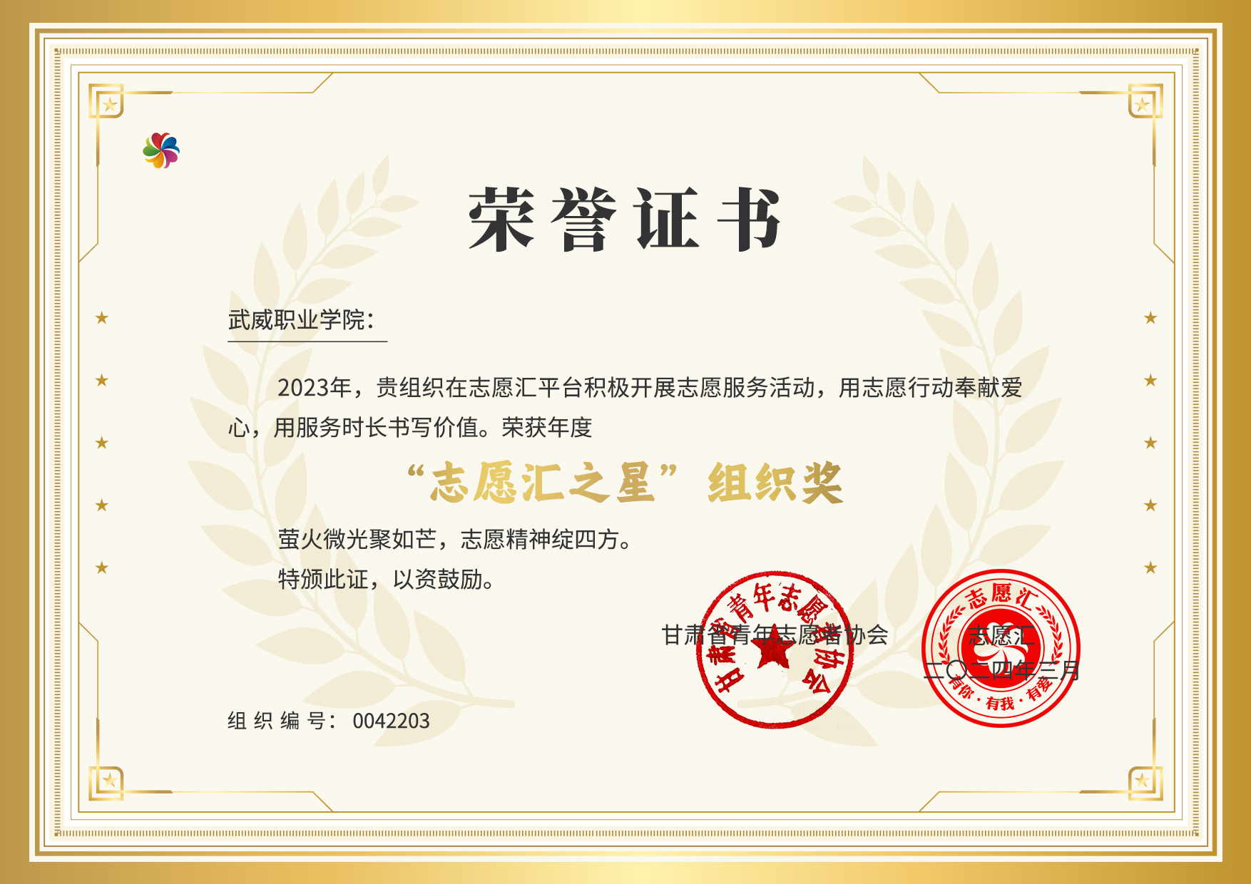 學(xué)校獲評2023年度 “志愿匯之星”年度組織獎
