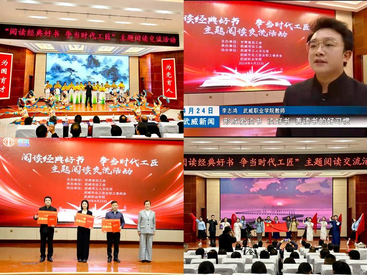 4月23日,由省總工會主辦、市總工會承辦,武威職業(yè)學院協(xié)辦的“閱讀經(jīng)典好書爭當時代工匠”主題讀書交流活動在菁英廳隆重舉行。省總工會三級調(diào)研員馬艷,市總工會黨組書記、常務(wù)副主席康金蓮,學校黨委副書記翟存祥出席活動。全市職工書屋、便利型職工閱讀站點、勞模書架建設(shè)單位工會負責人,市、縣區(qū)總工會干部職工230多人參加活動。