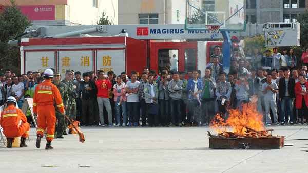 在演練現(xiàn)場(chǎng),武威消防支隊(duì)的工作人員詳細(xì)講解了我院配備的ABC型干粉滅火器的性能、用途、操作方法及撲救初起火災(zāi)的注意事項(xiàng),并進(jìn)行了現(xiàn)場(chǎng)演示。2015級(jí)各新生代表組成滅火隊(duì)依照次序和規(guī)定,進(jìn)行了模擬火災(zāi)的現(xiàn)場(chǎng)撲救演練。演練中,滅火隊(duì)員動(dòng)作正確、快捷、滅火過程快速安全,觀摩的同學(xué)們也很認(rèn)真。