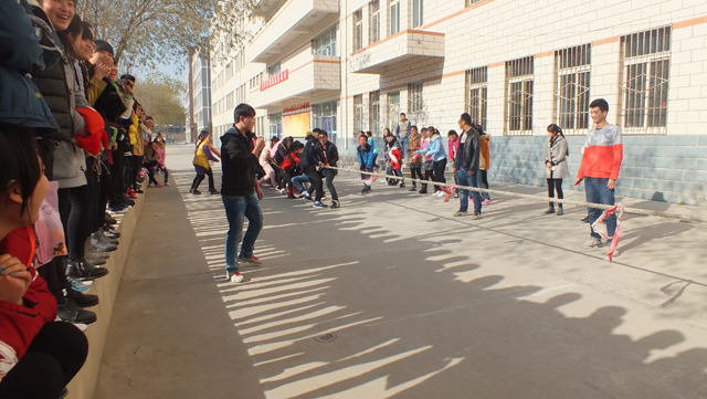 隨著蔡柱山宣布運(yùn)動(dòng)會(huì)正式開(kāi)始的指令發(fā)出,拔河決賽立刻在熱烈的氣氛中拉開(kāi)了架勢(shì),進(jìn)入決賽的班級(jí)在裁判的指導(dǎo)下迅速進(jìn)入指定位置,各班同學(xué)紛紛加油助威,運(yùn)動(dòng)場(chǎng)上氣氛頓時(shí)被調(diào)動(dòng)起來(lái)了。根據(jù)賽程安排,籃球賽、“15人跳繩”、乒乓球賽等集體和單人的各項(xiàng)比賽依次有序進(jìn)行,特別是跳繩比賽,參與面廣,同學(xué)們都積極投入其中,感受到運(yùn)動(dòng)的樂(lè)趣和團(tuán)結(jié)的力量。