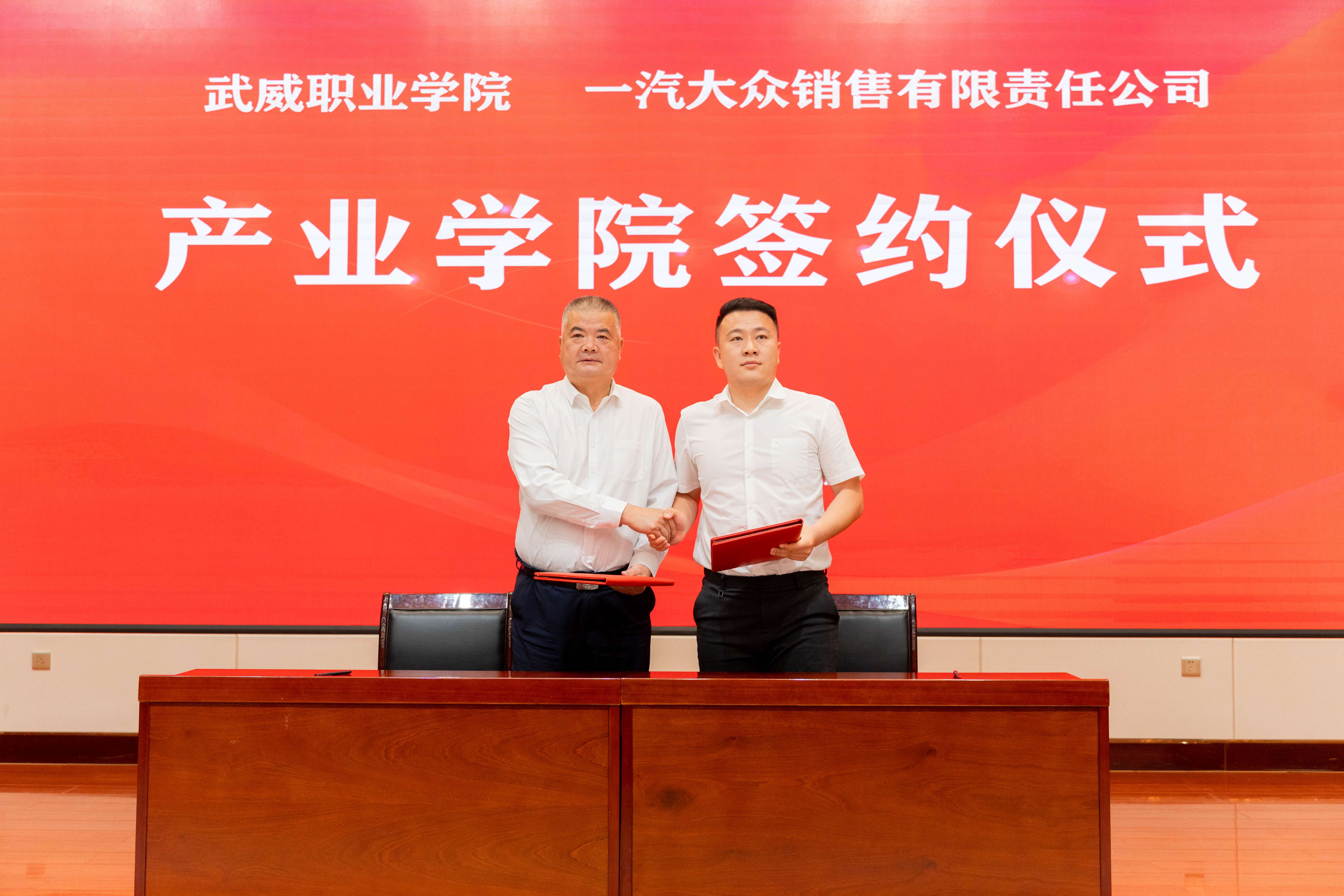 授牌儀式后,武威市教育局黨組書(shū)記、局長(zhǎng)王娟和武威職業(yè)學(xué)院黨委書(shū)記王宏為綠色化工行業(yè)產(chǎn)教融合創(chuàng)新研究院揭牌,武威職業(yè)學(xué)院黨委委員、副校長(zhǎng)王守云與一汽大眾有限責(zé)任公司相關(guān)負(fù)責(zé)同志簽約,共建產(chǎn)業(yè)學(xué)院。