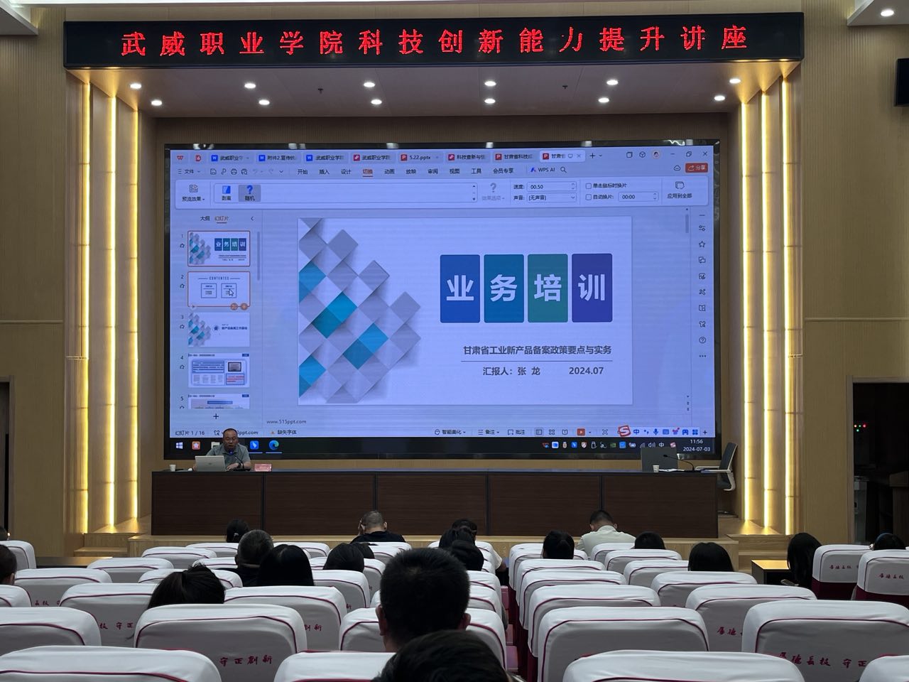 為進(jìn)一步提升學(xué)校教師科研創(chuàng)新能力,掌握科技成果評價(jià)及新產(chǎn)品備案實(shí)施細(xì)則,7月3日上午,科技處邀請了甘肅省科學(xué)技術(shù)情報(bào)研究所專家蘇海龍和張龍研究員來我校開展科研專題講座。教師們積極踴躍參加講座,認(rèn)真聆聽,收獲頗豐。