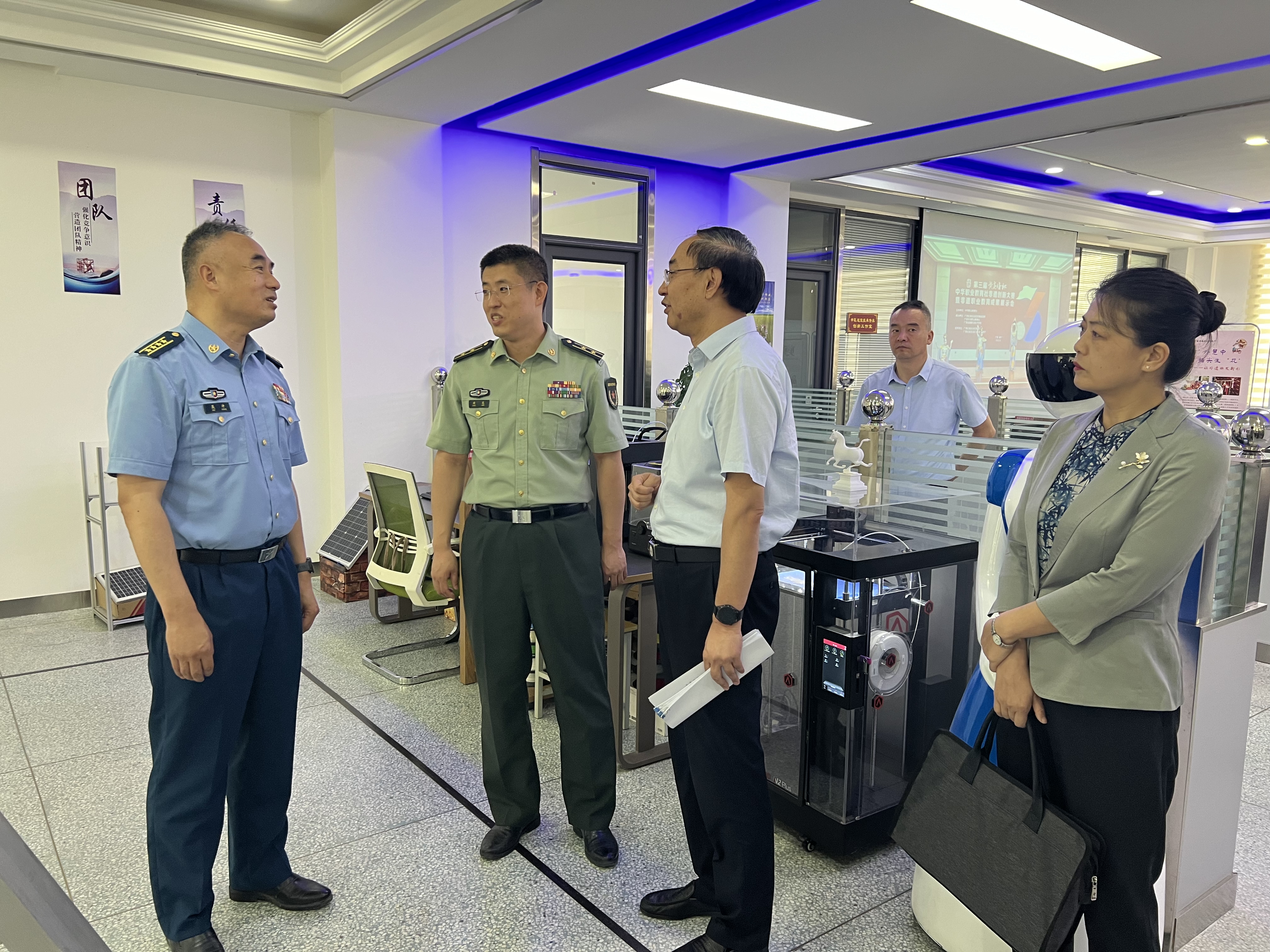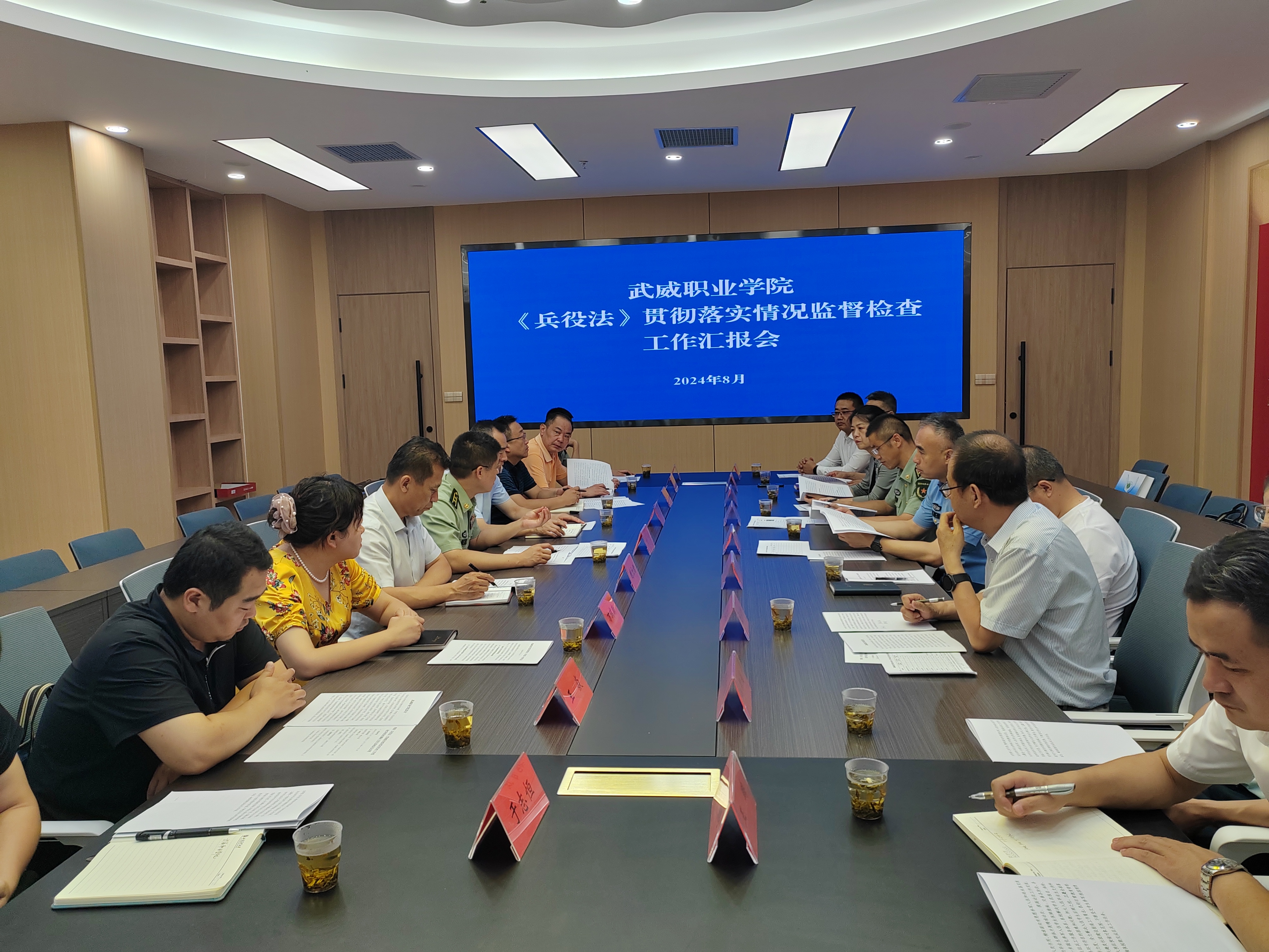 8月2日上午,省級《兵役法》貫徹落實情況監(jiān)督檢查工作組一行9人在甘肅省軍區(qū)動員局征集處程龍?zhí)庨L的帶領下,在武威軍分區(qū)大校副司令員吳沖、武威市司法局副局長黨萬馳和武威市教育局副局長馬曉麗的陪同下,來我校調研《兵役法》貫徹落實情況。學校黨委書記王宏,黨委副書記翟存祥,黨委委員、副校長王永緒陪同調研。