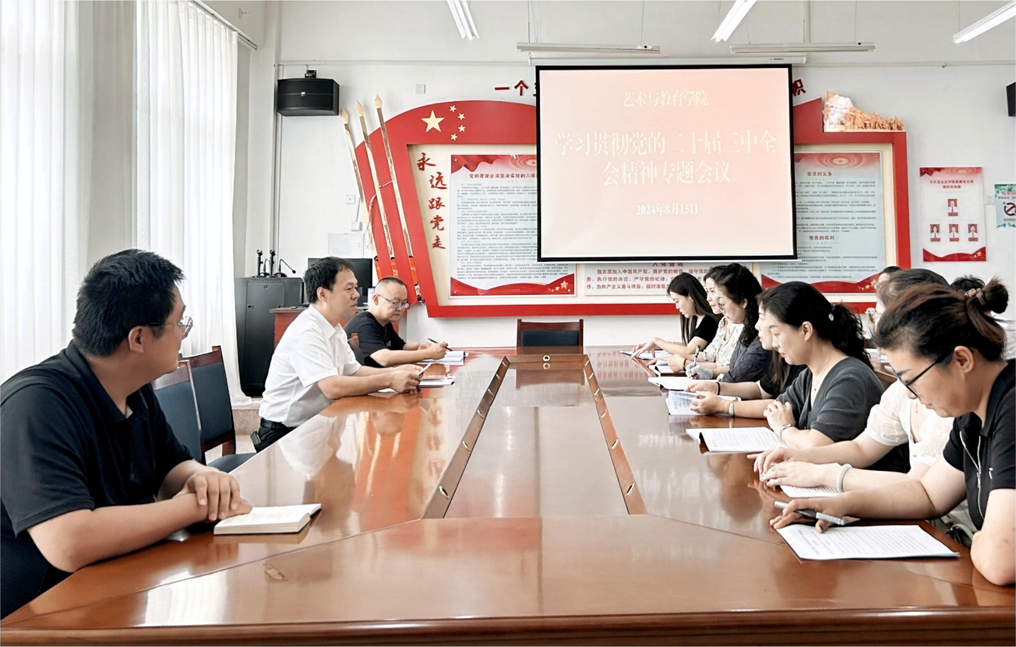 8月15日,藝術與教育學院召開黨的二十屆三中全會精神專題學習會議,傳達學習《習近平總書記關于<中共中央關于進一步全面深化改革、推進中國式現(xiàn)代化的決定>的說明》《中國共產黨第二十屆中央委員會第三次全體會議公報》《中共中央關于進一步全面深化改革推進中國式現(xiàn)代化的決定》,以及《深化教育綜合改革》等內容。會議由學院黨總支書記王政主持,全體教職工參加會議。