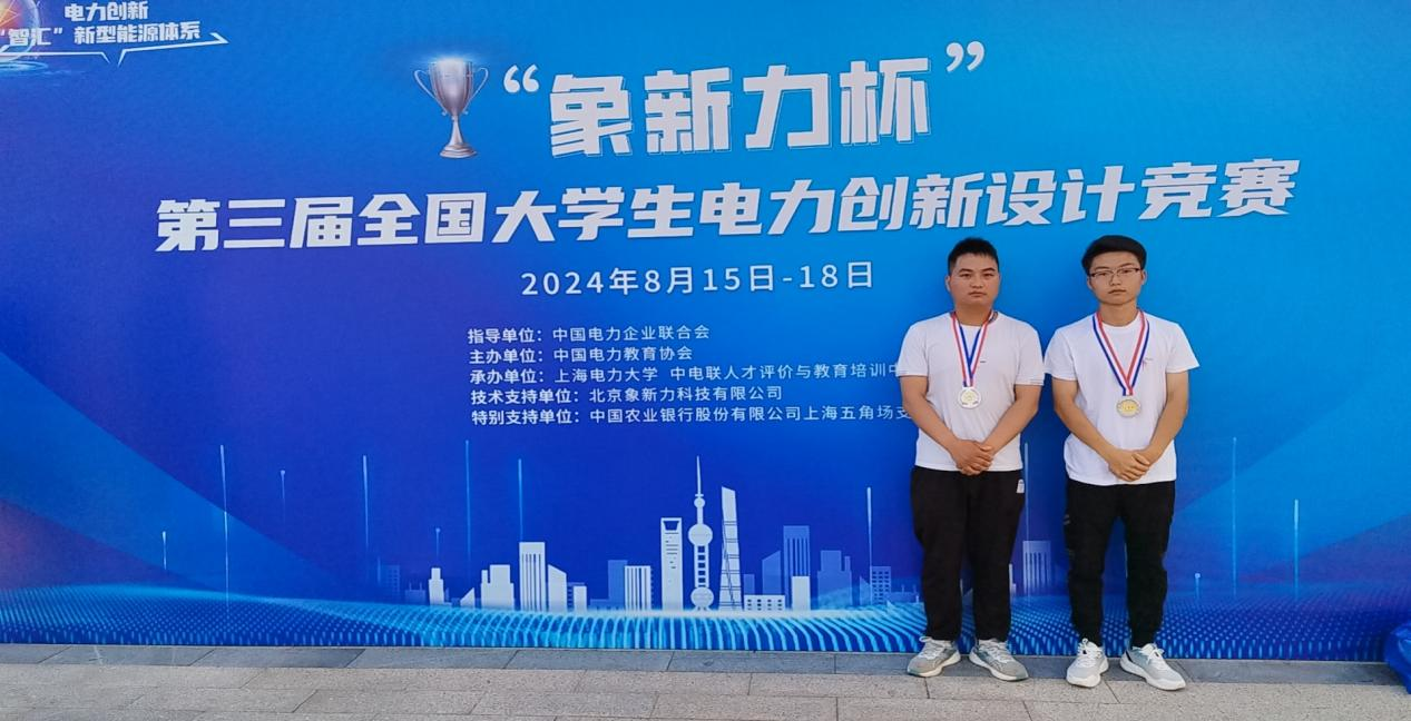 8月15-18日,“象新力杯”第三屆全國大學(xué)生電力創(chuàng)新設(shè)計競賽總決賽在上海電力大學(xué)(臨港校區(qū))圓滿舉行。來自全國114所高校的289支團隊共計1500余人共同參與,經(jīng)過線上線下,匯聚智慧、碰撞創(chuàng)意、交流成果、比拼才能,我校工程技術(shù)學(xué)院參賽的2名同學(xué)獲決賽二等獎。