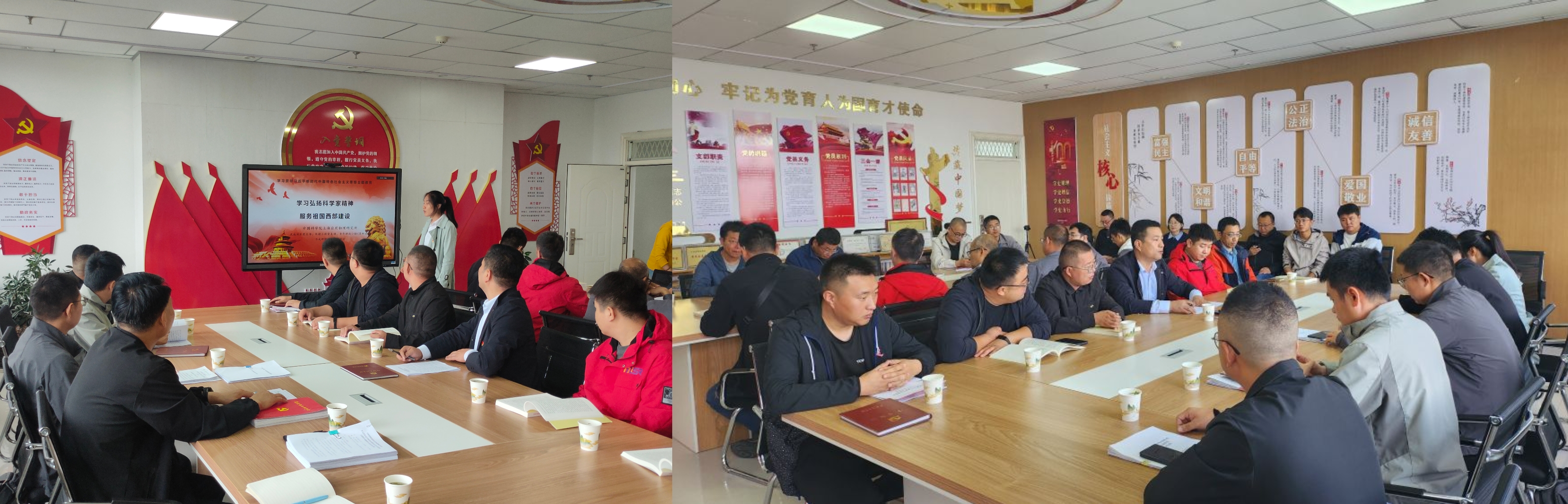 參觀結(jié)束后,全體黨員在中科低碳新能源技術(shù)學(xué)院黨員活動(dòng)室進(jìn)行了交流研討。期間,中國(guó)科學(xué)院上海應(yīng)用物理研究所武威園區(qū)黨支部支部書(shū)記趙先堂首先介紹了來(lái)訪的人員和此次聯(lián)合黨建的目的,之后上海應(yīng)物所武威園區(qū)辦副主任嚴(yán)慧娟講了題為《學(xué)習(xí)弘揚(yáng)科學(xué)家精神 服務(wù)祖國(guó)西部建設(shè)》的主題黨課,中科低碳新能源技術(shù)學(xué)院黨總支書(shū)記、院長(zhǎng)黃述杰以“創(chuàng)建基層黨建品牌,引領(lǐng)教育教學(xué)改革發(fā)展”為主題,介紹了學(xué)院黨總支基本情況和學(xué)院黨支部標(biāo)準(zhǔn)化建設(shè)情況,雙方就黨建工作中好的做法和經(jīng)驗(yàn)進(jìn)行了分享和交流。