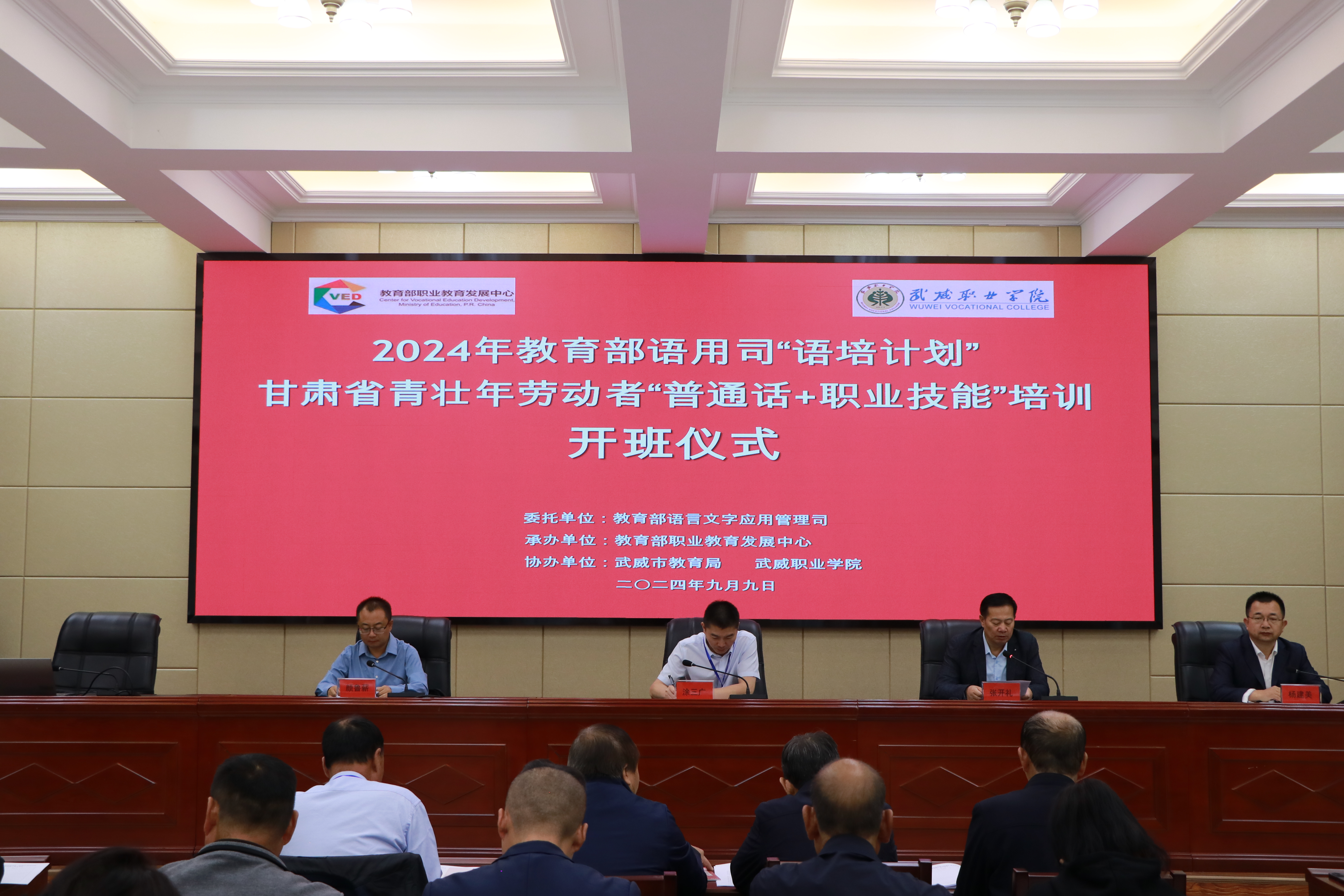 9月9日上午,2024年教育部語用司“語培計劃”甘肅省青壯年勞動者“普通話+職業(yè)技能”培訓班在我校正式開班。本次培訓是深入貫徹黨的二十大精神和二十屆三中全會精神,根據教育部語用司《關于實施2024年國家通用語言文字示范性培訓計劃的通知》,受教育部語用司委托,由教育部職業(yè)教育發(fā)展中心承辦、武威市教育局、學校共同協(xié)辦。本次培訓為期5天,共有來自武威市三縣一區(qū)的50余名學員參加。培訓以“語言鋪路,技能致富”為主題,培訓內容聚焦當?shù)剞r業(yè)種植技術技能和畜牧業(yè)養(yǎng)殖技能開展,以古浪“紅禿頭”小麥、民勤蜜瓜等特色農產品的栽培養(yǎng)殖技術為主線,設計了“普通話+職業(yè)技能”為主題的課程內容,邀請了國家級普通話測試員、甘肅省農業(yè)科學院專家、武威市農科所專家等組成的專家團隊。